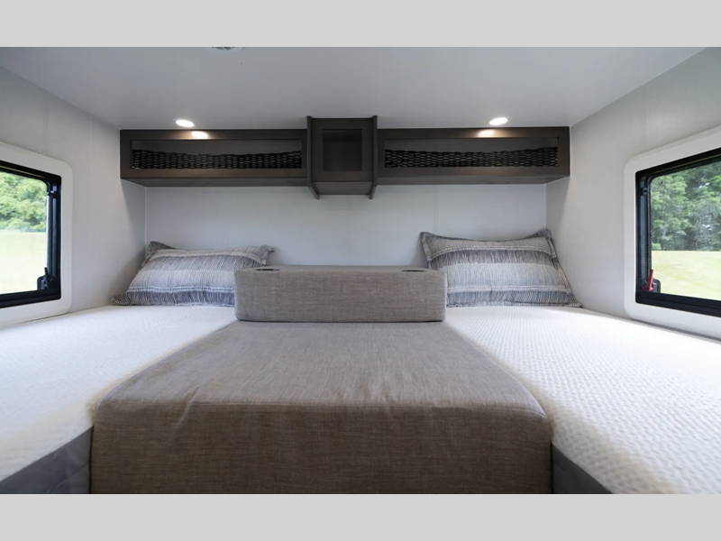 Each model has an extensive list of upgraded, standard features with contemporary interiors and functional living spaces. You will be able to enjoy life on the road for years to come thanks to the durable composite exterior fiberglass with no exterior wood, plus a crowned, one-piece fiberglass roof and aluminum-framed floor. The automatic, 4-point leveling jacks allow set up to be even easier, and there is a quad-view camera system to maneuver in and out of the campground like a pro!