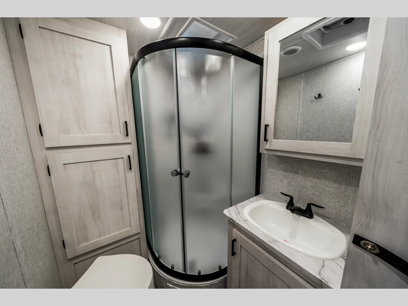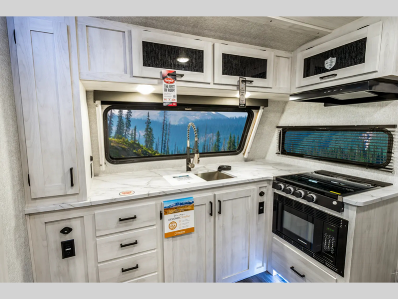 Sleeps 3 Slides 1 Length 24 ft 1 in Ext Width 8 ft Ext Height 11 ft 2 in Hitch Weight 740 lbs GVWR 7740 lbs Dry Weight 5293 lbs Cargo Capacity 2447 lbs Fresh Water Capacity 53 gals Grey Water Capacity 60 gals Black Water Capacity 30 gals Furnace BTU 35000 btu Available Beds Queen Refrigerator Type 12V Residential Inspired Refrigerator Size 10.7 cu ft Cooktop Burners 3 Number of Awnings 1 Water Heater Type On Demand Tankless AC BTU 15000 btu Awning Info 16' Power Axle Count 2 Shower Type Radius Electrical Service 50 amp  -