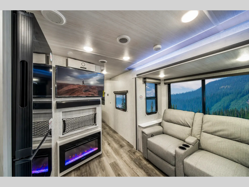 Sleeps 8 Slides 1 Length 38 ft 1 in Ext Width 8 ft Ext Height 11 ft 2 in Hitch Weight 935 lbs GVWR 11335 lbs Dry Weight 7788 lbs Cargo Capacity 3547 lbs Fresh Water Capacity 53 gals Grey Water Capacity 60 gals Black Water Capacity 30 gals Furnace BTU 35000 btu Number Of Bunks 1 Available Beds Queen Refrigerator Type 12V Residential Inspired Refrigerator Size 10.7 cu ft Cooktop Burners 3 Number of Awnings 1 Water Heater Type On Demand Tankless AC BTU 15000 btu Awning Info 21' Power Axle Count 2 Shower Type Standard Electrical Service 50 amp Similar Floorplans