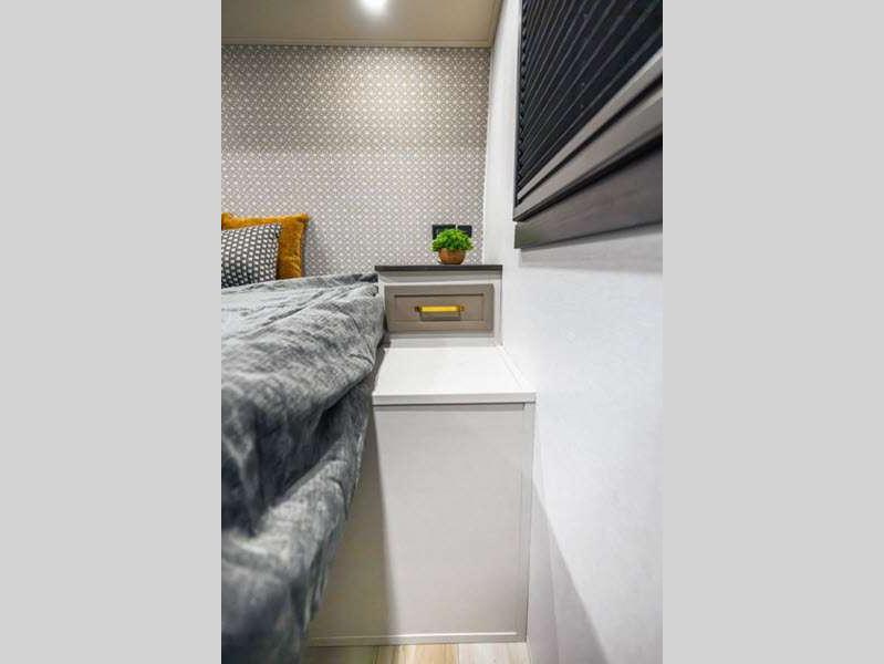 Sleeps 2 Slides 1 Length 24 ft Ext Width 8 ft Ext Height 10 ft 10 in Hitch Weight 785 lbs Dry Weight 5403 lbs Cargo Capacity 2382 lbs Fresh Water Capacity 49 gals Grey Water Capacity 62 gals Black Water Capacity 32 gals Available Beds Queen with Versa-Tilt Refrigerator Type 12V Black Refrigerator Size 10 cu ft Cooktop Burners 3 Shower Size 30" x 36" Number of Awnings 1 Water Heater Type Tankless AC BTU 15000 btu TV Info LR 40" LED Smart TV Awning Info 14' with LED Lights Axle Count 2 Shower Type Walk-In Shower Similar Floorplans