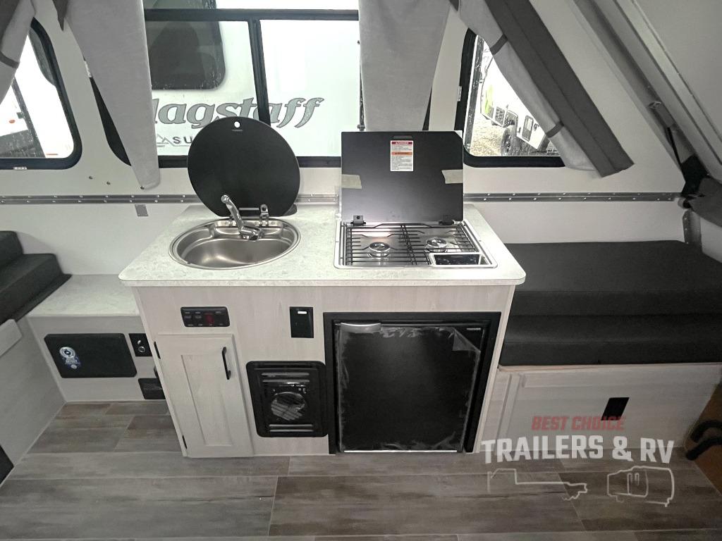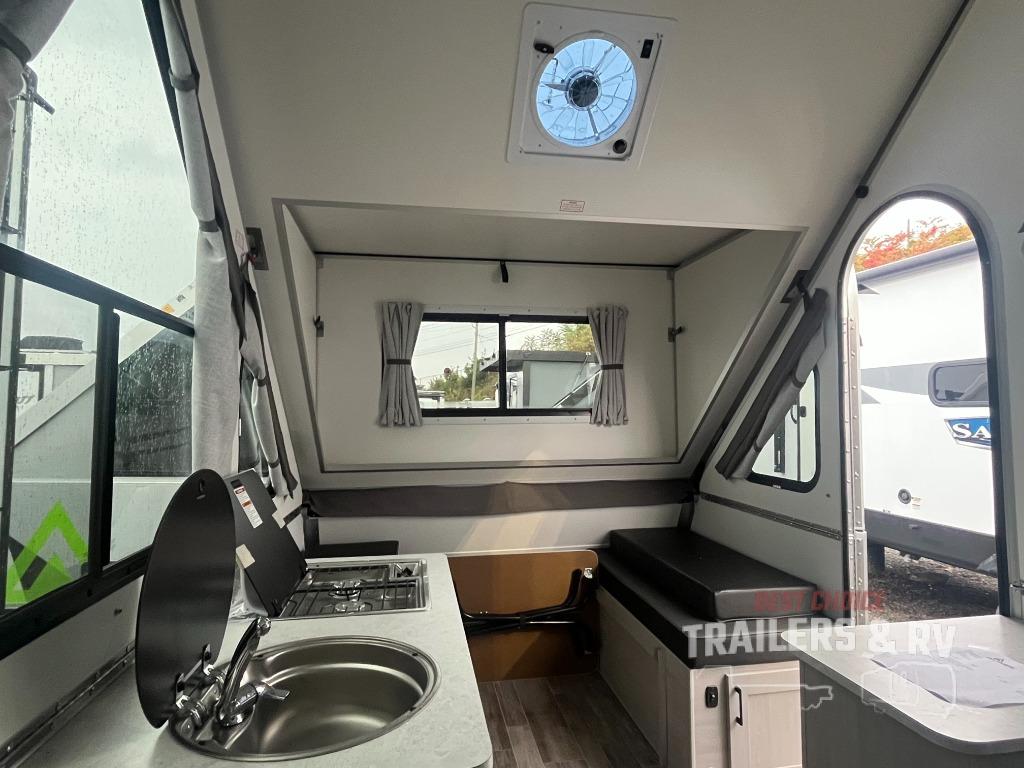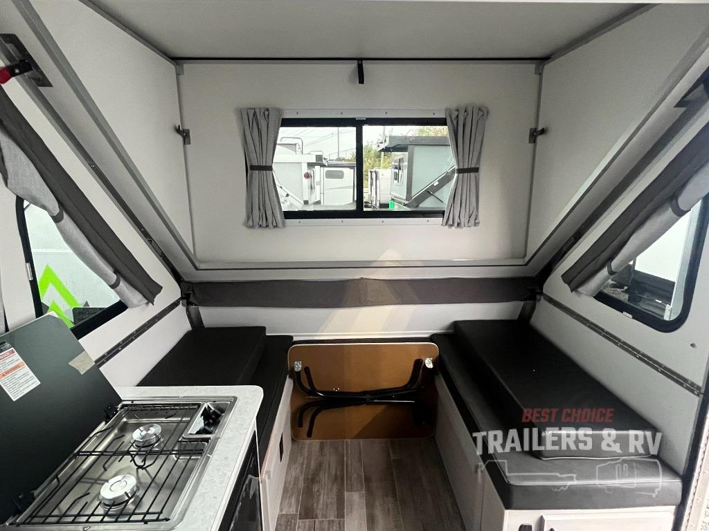 If you enjoy camping with friends or you need your own space at night, this Twin Bed model will do the trick! While two campers take the rear twin beds, the front booth dinette can convert to a 30" x 76" bed for an extra guest, and in the morning, you can convert it back to dining space. Whip up breakfast on the two-burner stove or use the convenient microwave oven. There is also a sink to clean up your dishes plus a 3.1 cu. ft. 12V refrigerator to put milk and eggs back in. Don't let this cute A-Frame slip away!