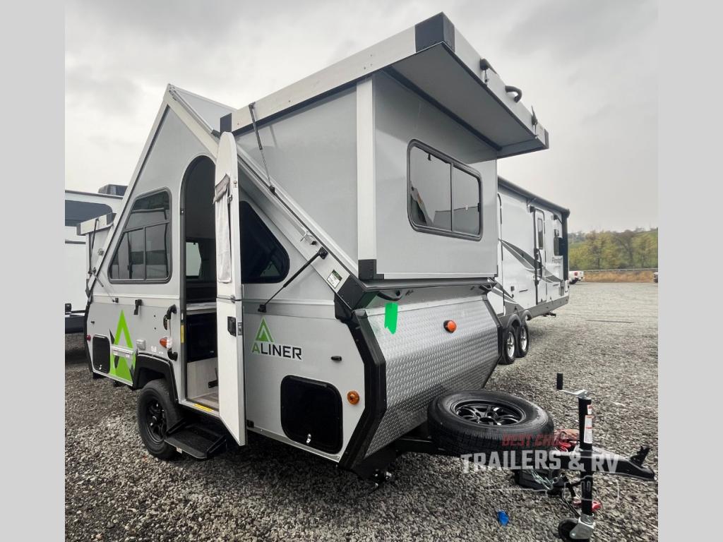 With any Aliner Classic A-frame camper you will find Azdel lightweight, composite interior wall and ceiling panels for added durability and strength. The additional corner windows provide panoramic views, and the hardwood cabinet doors will give these campers a more at-home feel. Four stabilizer jacks come standard, along with an LP connection, an exterior outlet, and an outside shower. It's no wonder these campers are named classic! Choose your model and start camping today!