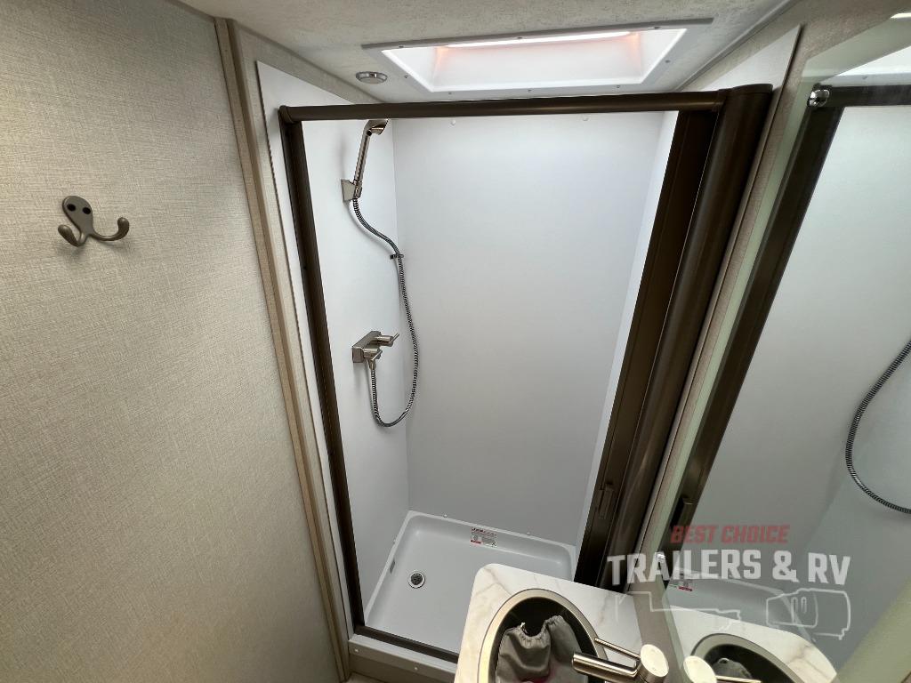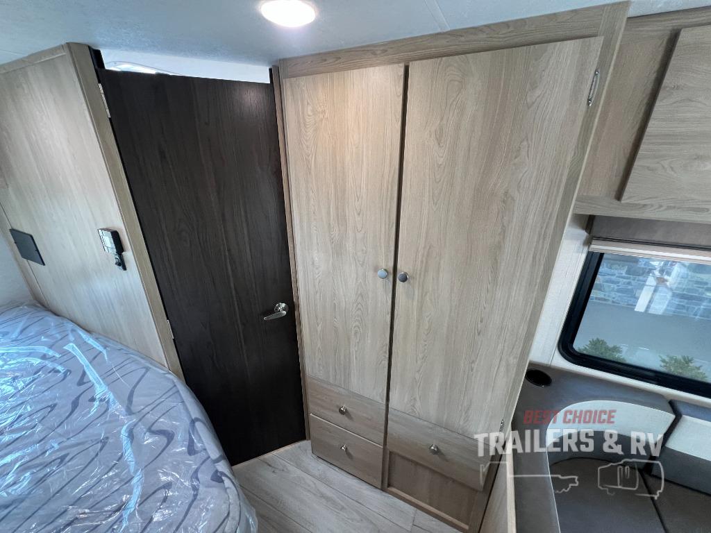 With each Leprechaun Class C gas motorhome by Coachmen you will enjoy "better" interior appointments, like the residential-sized beds, on-demand tankless water heater, and 15,000 BTU A/C. A 7" touchscreen dash radio with CarPlay and a backup monitor will let you easily navigate the open road like pro. The Leprechaun is constructed with composite sidewall and cabover floor construction plus a seamless one-piece roof material for a durable motorhome made to last.