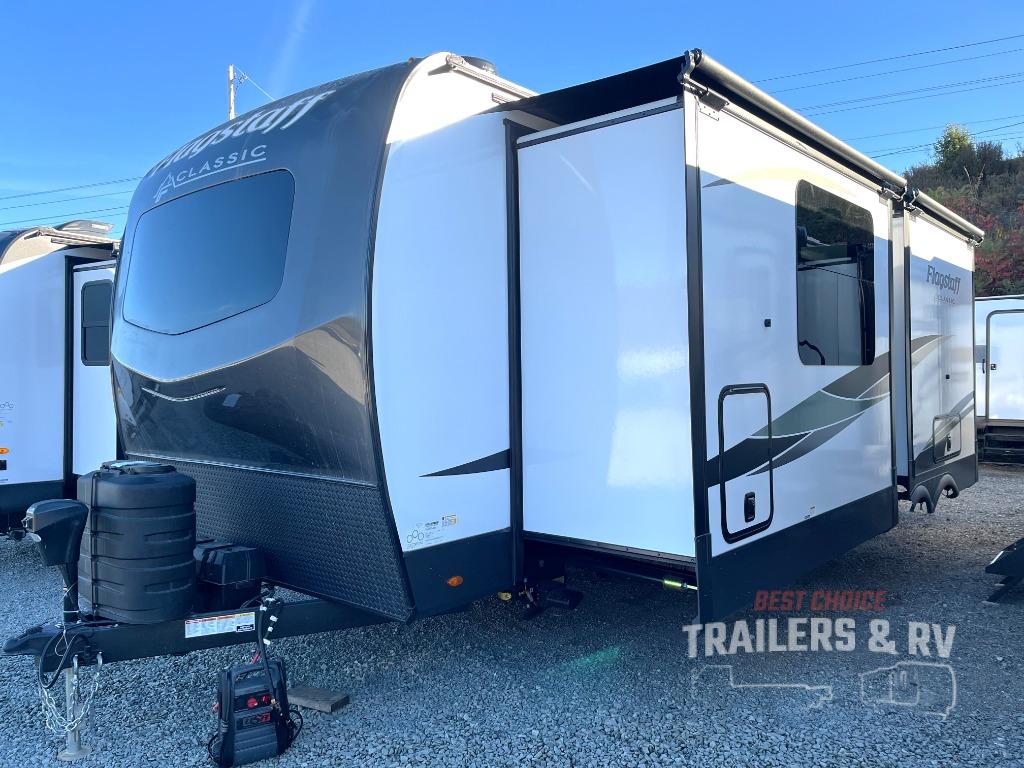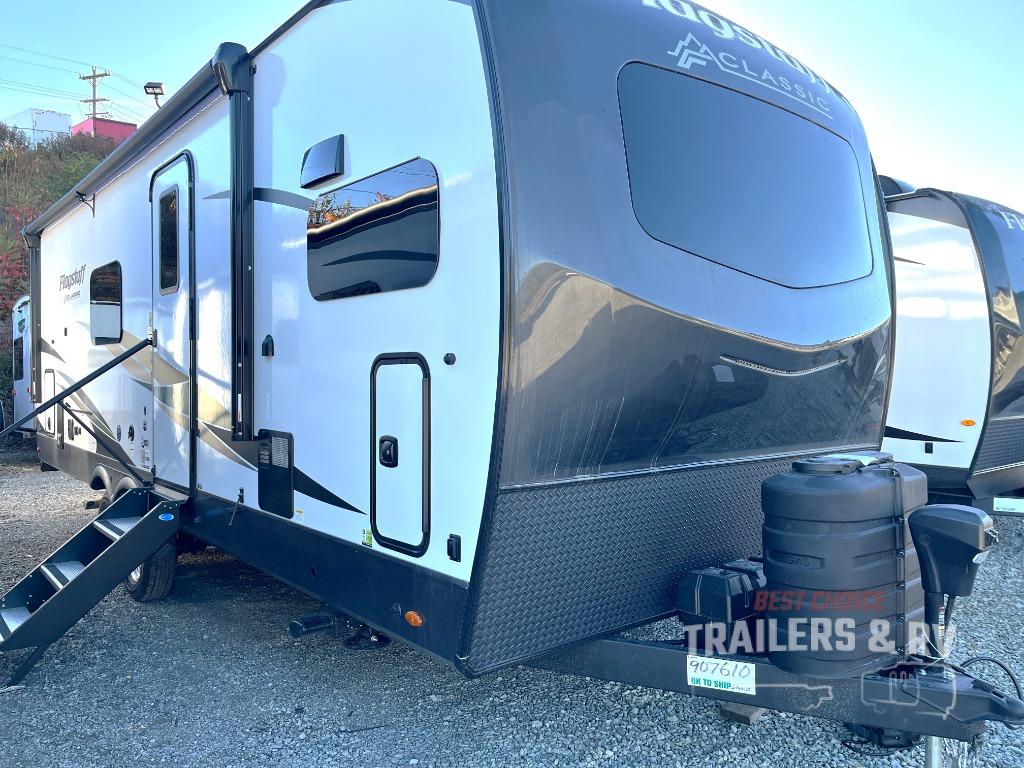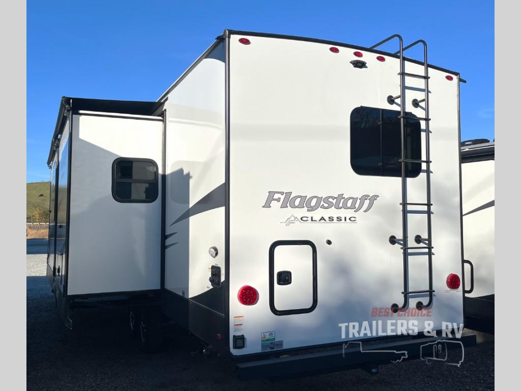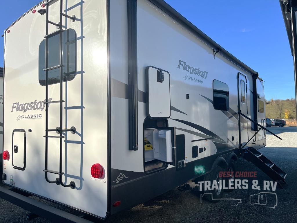 Each one of these Forest River Flagstaff Classic fifth wheels or travel trailers will be your home on wheels! Their quality craftsmanship and attention to detail shines through the surface-coated steel I-beam frame on fifth wheels, the enclosed underbelly, the radius roof with vaulted interior ceilings, and six-sided fully aluminum-framed floor, walls, and roof. Towing your unit will be easy with the torsion axle, Rubber-Ryde suspension, and nitrogen-filled Goodyear Endurance tires. You will even reduce your use of water with the Showermiser water saving system in the bathroom. A few other convenient features you will enjoy include a control panel with WeRV app control, a designer headboard and bedding, and an outside shower with hot and cold water. Come choose your favorite one today!