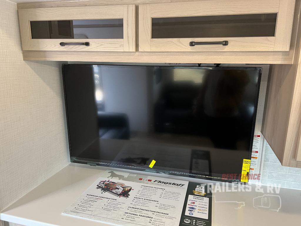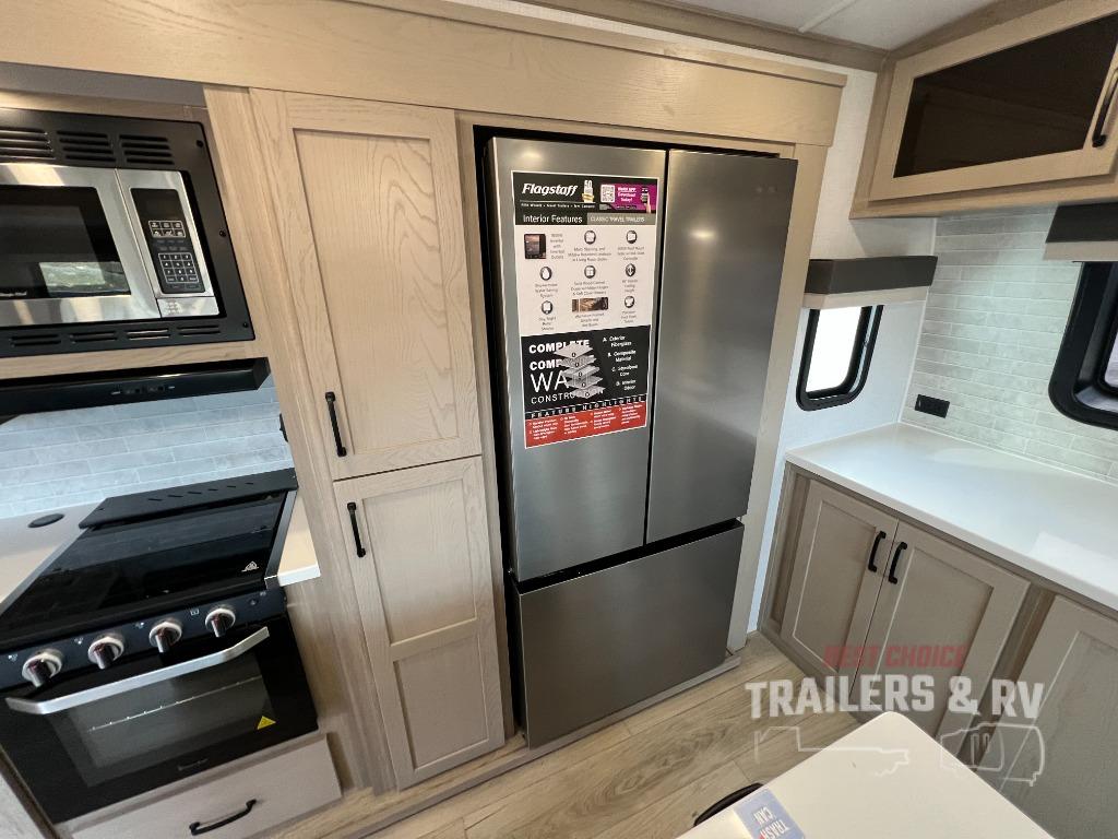 Each one of these Forest River Flagstaff Classic fifth wheels or travel trailers will be your home on wheels! Their quality craftsmanship and attention to detail shines through the enclosed underbelly, the radius roof with vaulted interior ceilings, and six-sided fully aluminum-framed floor, walls, and roof. Towing your unit will be easy with the Goodyear Endurance tires plus a tire pressure monitoring system with a monitor. The interior of each Flagstaff Classic model will have you feeling right at home with Sedonwood cabinetry, soft closing drawer slides, reading lights in the bedroom, plus many more comforts.