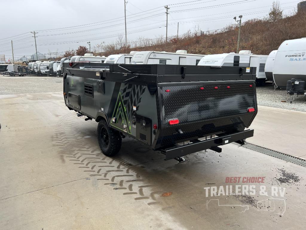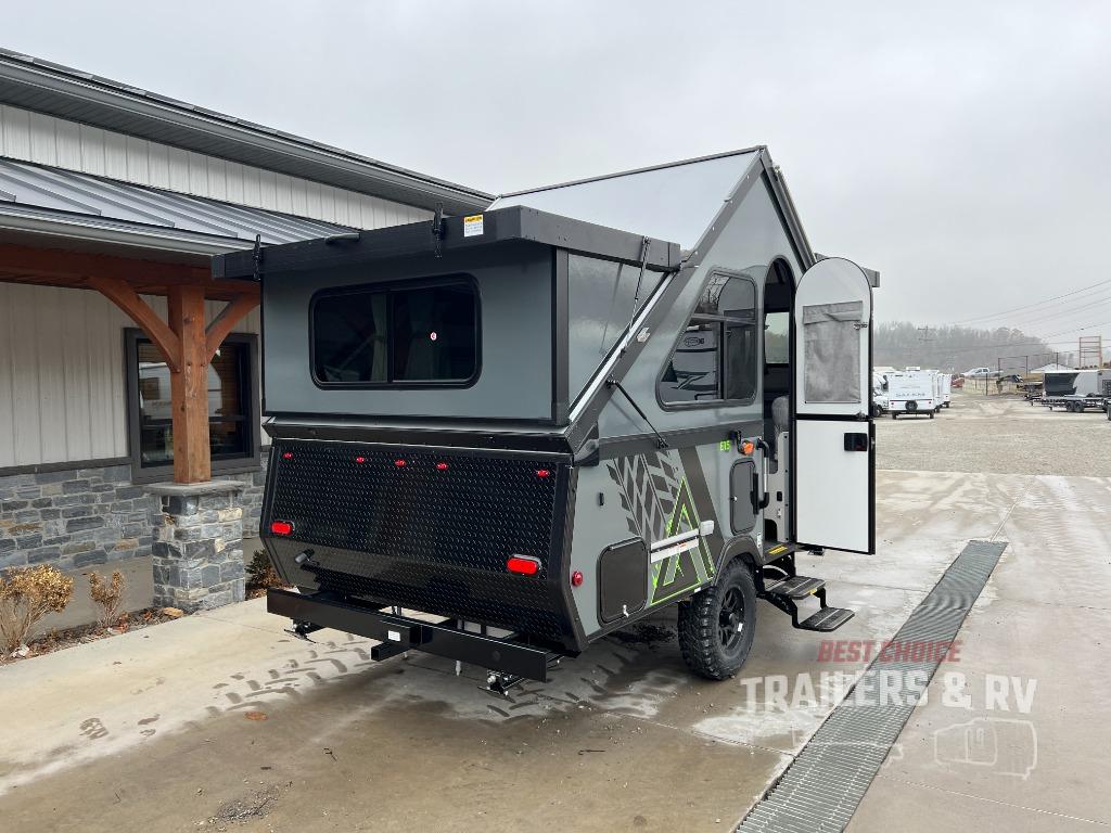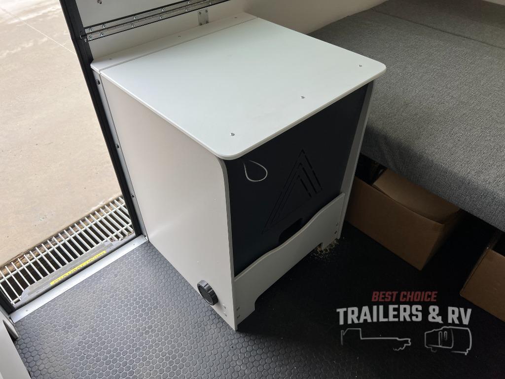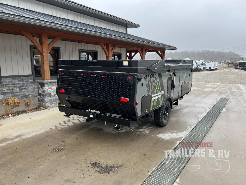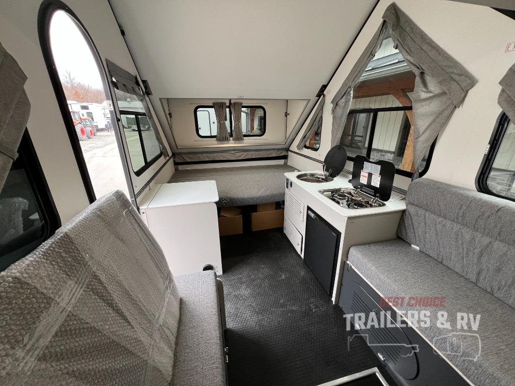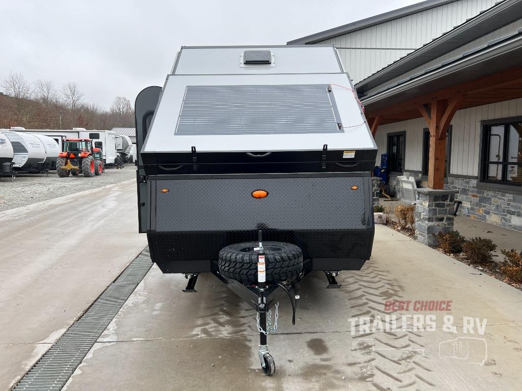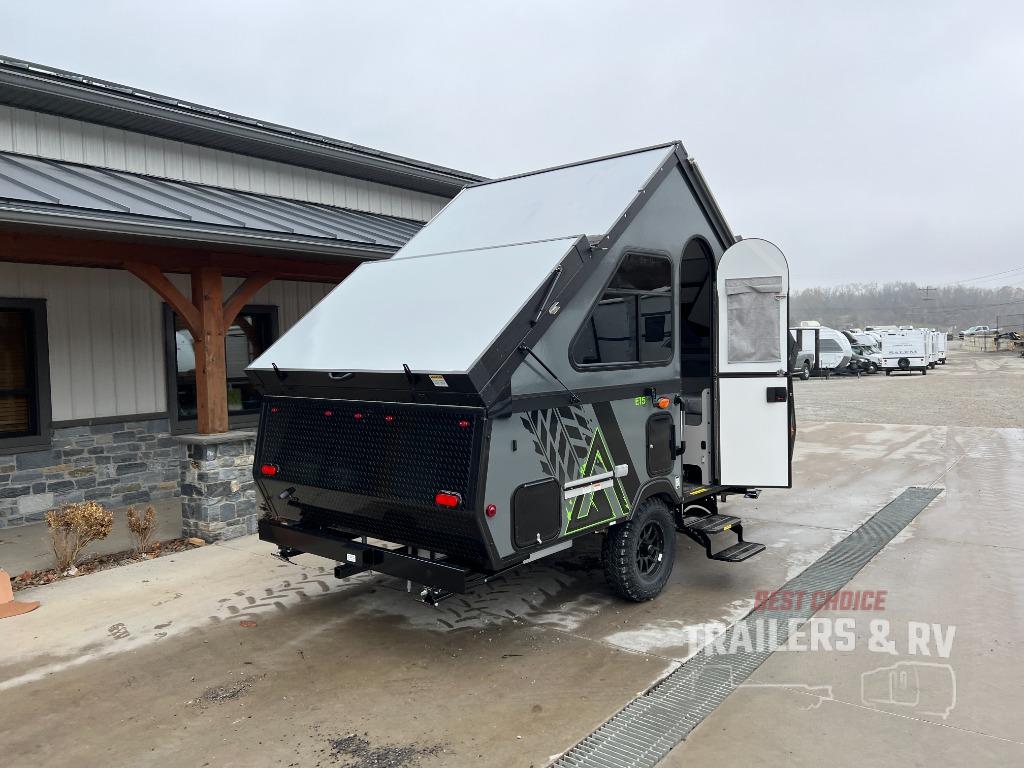 The Evolution A-frame camper by Aliner is coming to you with residential features and solid construction materials. You'll love the slate gray exterior, aluminum wheels, and the Azdel composite panels to help prolong the life of your camper. There are LED running lights, exterior baggage doors, and four stabilizer jacks to help keep your camper secure. You will also appreciate the keyless entry, the dual LP tanks with a cover, and the 200-watt solar panel on the front dormer for some off-grid power. The lift kit and 15" off-road tires add 3" to the height, allowing you to explore more roads, and you'll find many interior comforts to make you feel right at home!