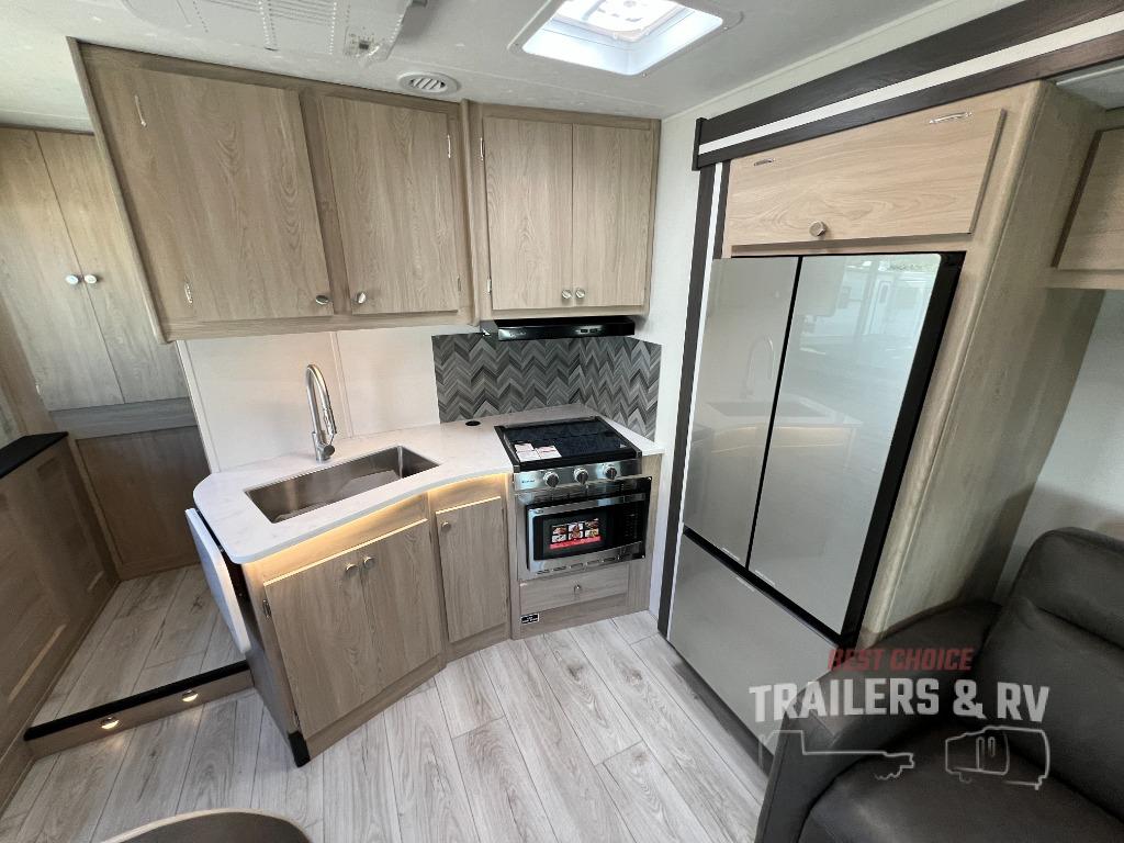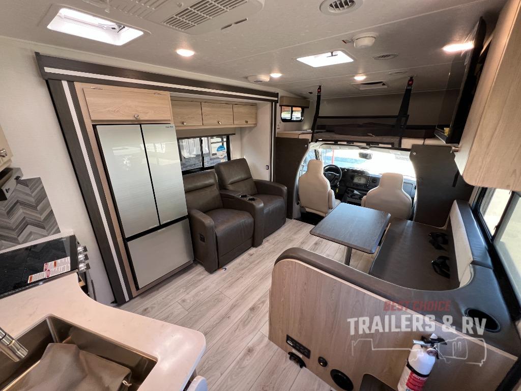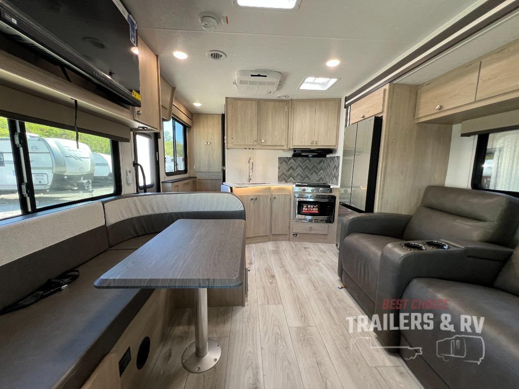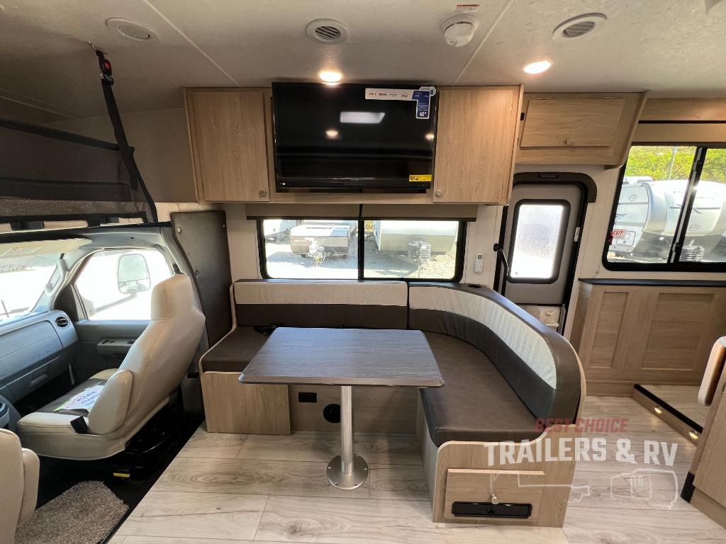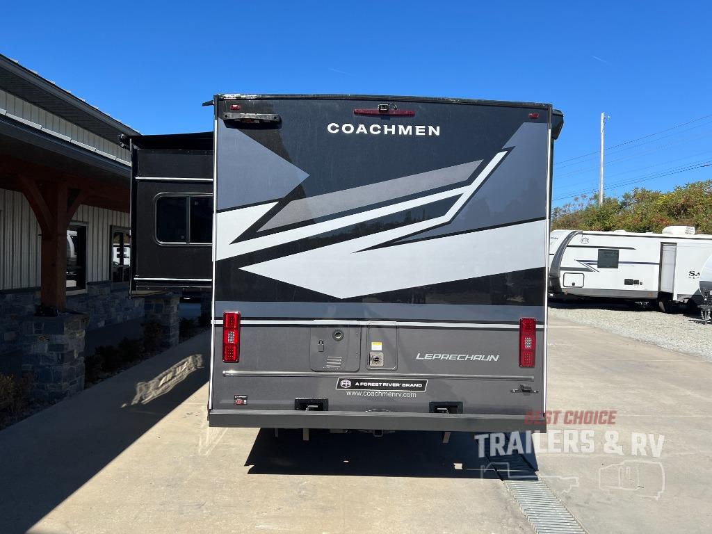 With each Leprechaun Class C gas motorhome by Coachmen you will enjoy "better" interior appointments, like the residential-sized beds, on-demand tankless water heater, and 15,000 BTU A/C. A dash radio and a backup monitor will let you easily navigate the open road like pro. There are also pleated night shades inside, along with premium vinyl flooring, a shower skylight, and USB charging ports to name a few comforts and conveniences. The Leprechaun is constructed with composite sidewall and cabover floor construction plus a seamless one-piece roof material for a durable motorhome made to last.