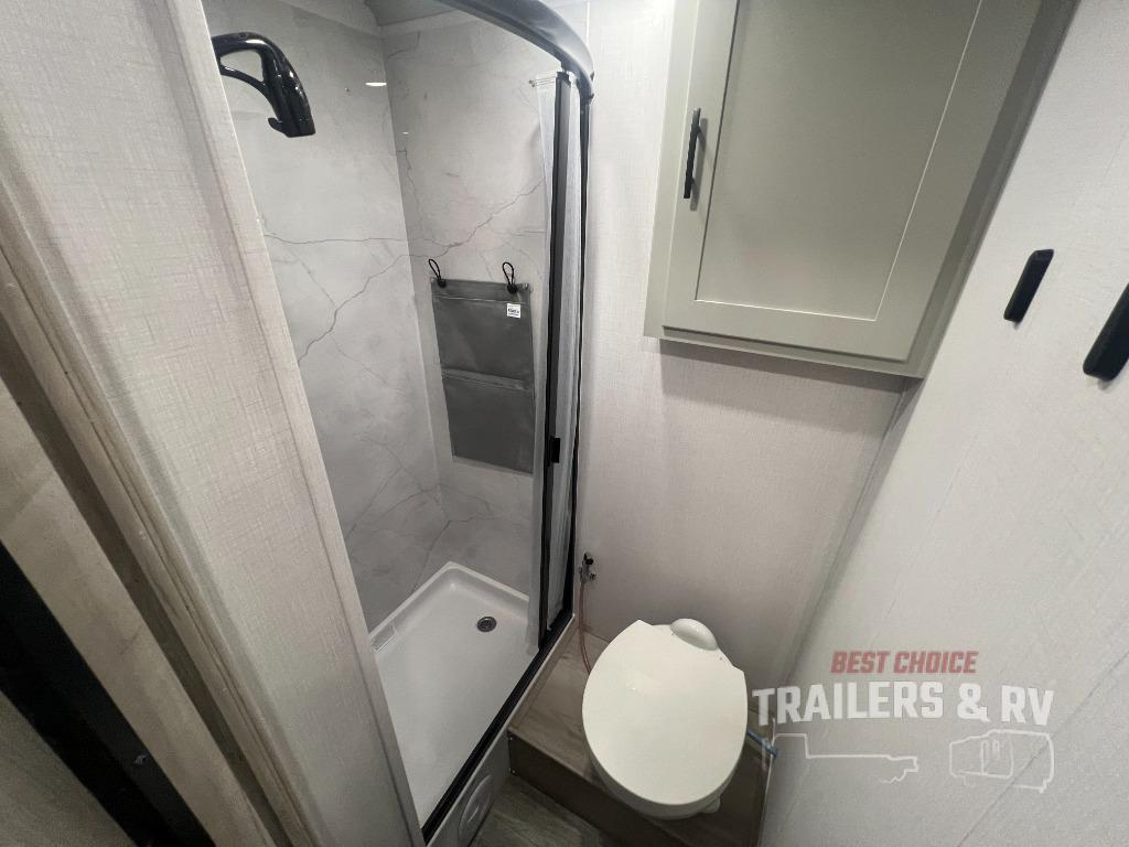 Enjoy a home away from home with this motorhome! The rear private bedroom has a queen bed slide for more interior space and privacy curtains to draw at night. If you need more sleeping space, just add the optional cab over bunk. The booth dinette slide is not only great for enjoying meals and play card games, but can also transform into an extra sleeping space. You could also switch it out for the optional theater seating to meet your specific needs. The bathroom has a shower with a skylight above for added natural lighting and an Oxygenics body spa RV shower head for a relaxing shower, and the vanity sink is just outside the bathroom so one person can get ready while another washes up. Store all of your outdoor gear in the exterior seamless rotocast storage compartment with LED lighting to see clearly at night too!