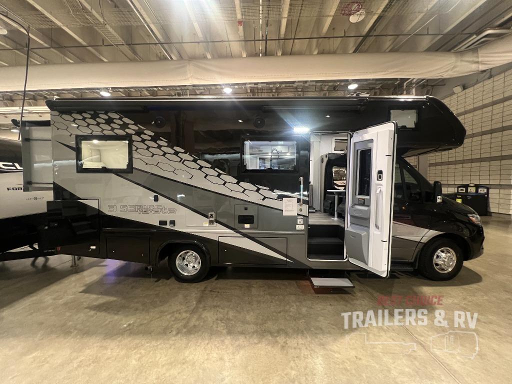Each one of these Dynamax Isata 3 Class C diesel motorhomes were designed to last with composite exterior fiberglass with no exterior wood, aluminum-framed roof trusses, and composite flooring substrate. The 2.0L l-4 turbo diesel engine will power your adventures, and the Mercedes-Benz Sprinter chassis provides a durable foundation. There is an MBUX 10.25" infotainment system and a quad-view camera system that will let the driver navigate the open road like a pro, and the added safety features are sure to bring you peace of mind. Outside, you'll be wowed by the custom full-body paint package with front-end Diamond Shield paint protection, plus there are exterior speakers, an armless patio awning with LED lights, and seamless rotocast storage compartments for your gear! Each model also includes many interior comforts to make you feel right at home, like the premium vinyl flooring throughout, hardwood craftsman-style cabinetry, solid surface countertops with LED edge lighting and backsplash, and the list goes on!