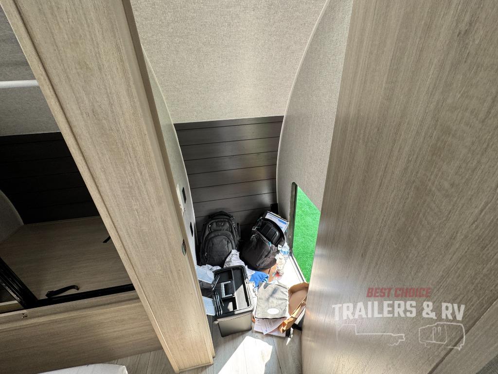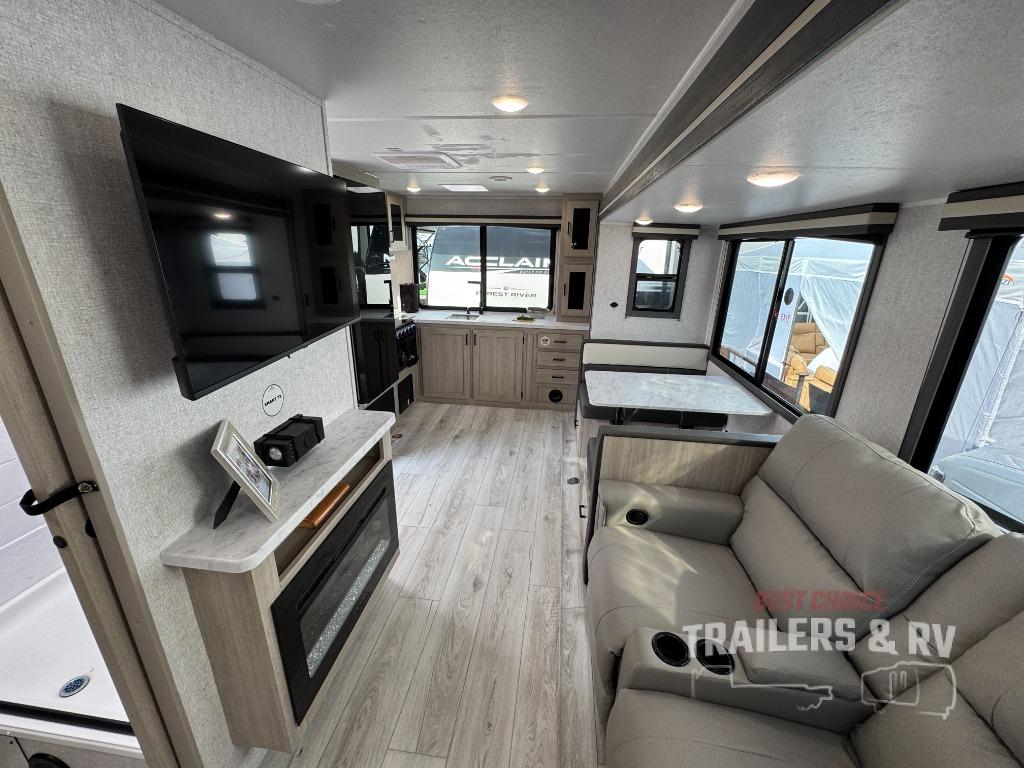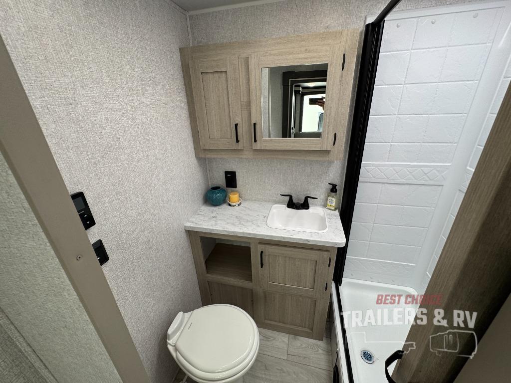 This travel trailer will feel just like home with its spacious interior and at-home comforts. Since there are dual entry doors, you can enter in through the front bedroom or the rear kitchen and living area. A king bed slide in the bedroom is sure to bring comfort, and there is a closet to keep your clothes wrinkle-free, plus washer and dryer prep. The second slide out is found in the living room, and here you can relax on the jiffy sofa or dine at the booth dinette. The chef of your group will love cooking in the rear kitchen, and there is generous counter space here to set out snacks. An entryway pantry and closet will provide additional storage for snacks, jackets, and more!