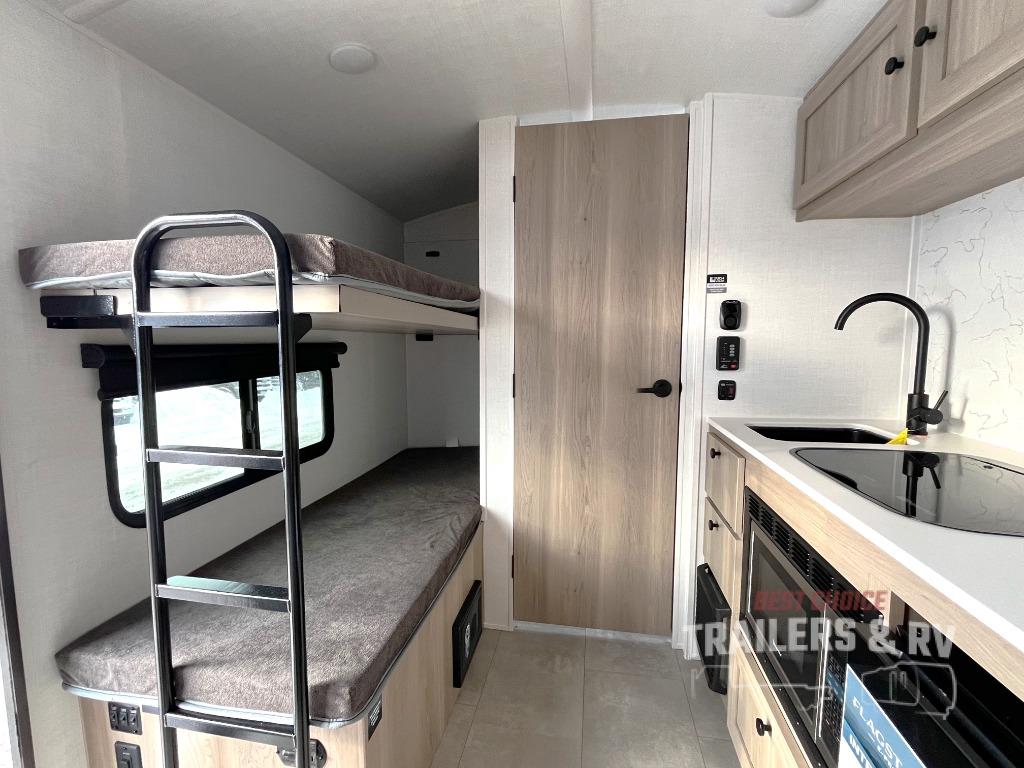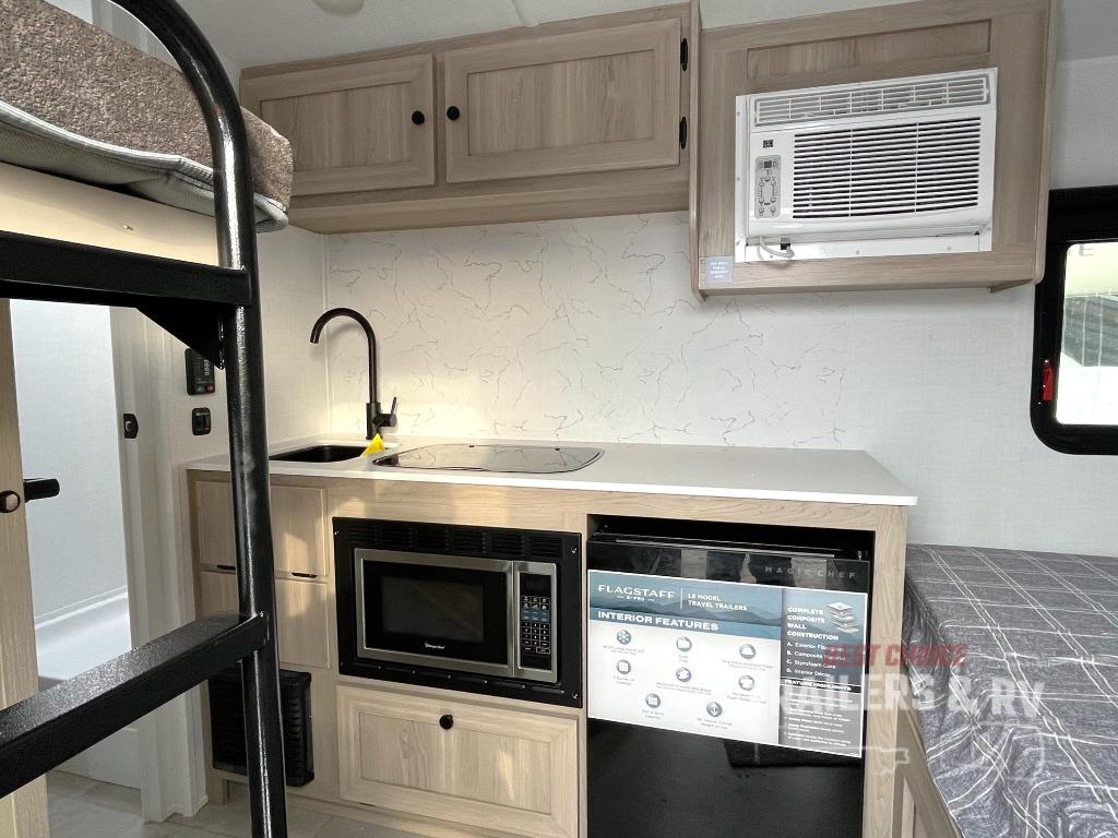 With any Flagstaff E-Pro travel trailer by Forest River, you will experience lightweight towing, style and features that will meet your needs, plus amenities that give you more than you expected! Built with interior and exterior composite sidewall construction for added strength and durability, a fully laminated roof for weather-tight protection, and aluminum truss roof bracing for enhanced stability. These trailers are equipped with Dexter leaf-spring axles for smooth towing and durable performance. The interior features an aluminum dinette, bed, and bunk, providing a strong and lightweight framework for comfortable living. Additionally, the backup camera prep ensures a safe and stress-free reversing experience. Make your selection today!