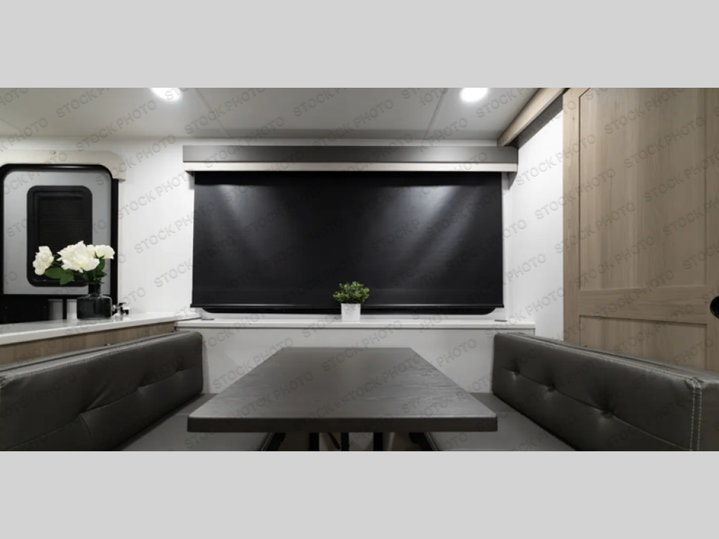 It will be so easy to enjoy time at the campground in this cozy travel trailer. The full kitchen includes a three burner gas oven, a microwave oven, and a 12V refrigerator to cook and store food, and the pantry will let you stock up on snacks. Your crew can get comfortable on the theater seat or play a game at the 39" dream dinette, and there is a smart TV with a lift here to make it a movie night. The walk-thru bath will let you freshen up each day, and the queen bed slide out in the rear bedroom is sure to bring comfort. You will also find one of the dual entry doors here for convenience plus a wardrobe for clothes storage and an optional TV if you want to add a television. The exterior is just as accommodating with its pass-thru storage, 2" receiver hitch, and 21' power awning!