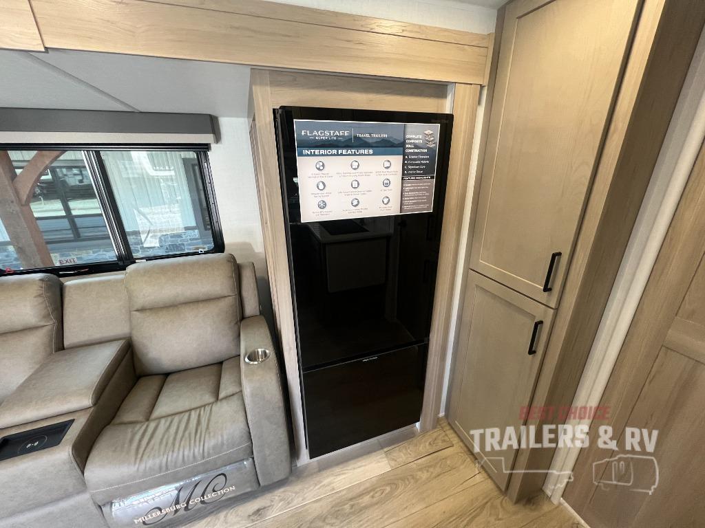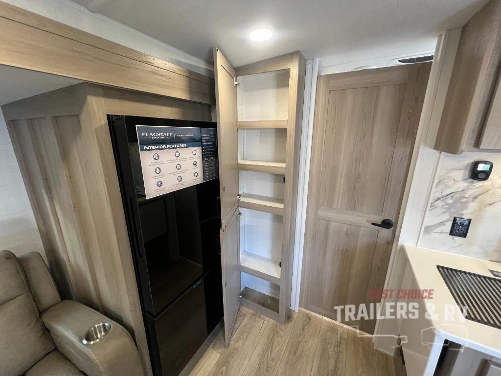With any Flagstaff Super Lite travel trailer by Forest River, you can enjoy quality features with lightweight towing! The Climate Protection Package includes radiant foil in the front cap, underbelly, and slides, plus there are 12V thermostat-controlled heated tanks for added protection. The complete composite wall construction and 6-sided full-aluminum frame is ultra durable, and the RoadTech tire pressure monitoring adds safety. Each model also includes the Coast to Coast Package that comes with slam latch baggage doors, a high gloss fiberglass cap, Goodyear Endurance tires, plus a 200W solar panel with an optional additional 200W panel for more off grid capabilities. Inside, you'll love the roller shades, solid surface kitchen countertops, a shower miser system, and many more comforts!