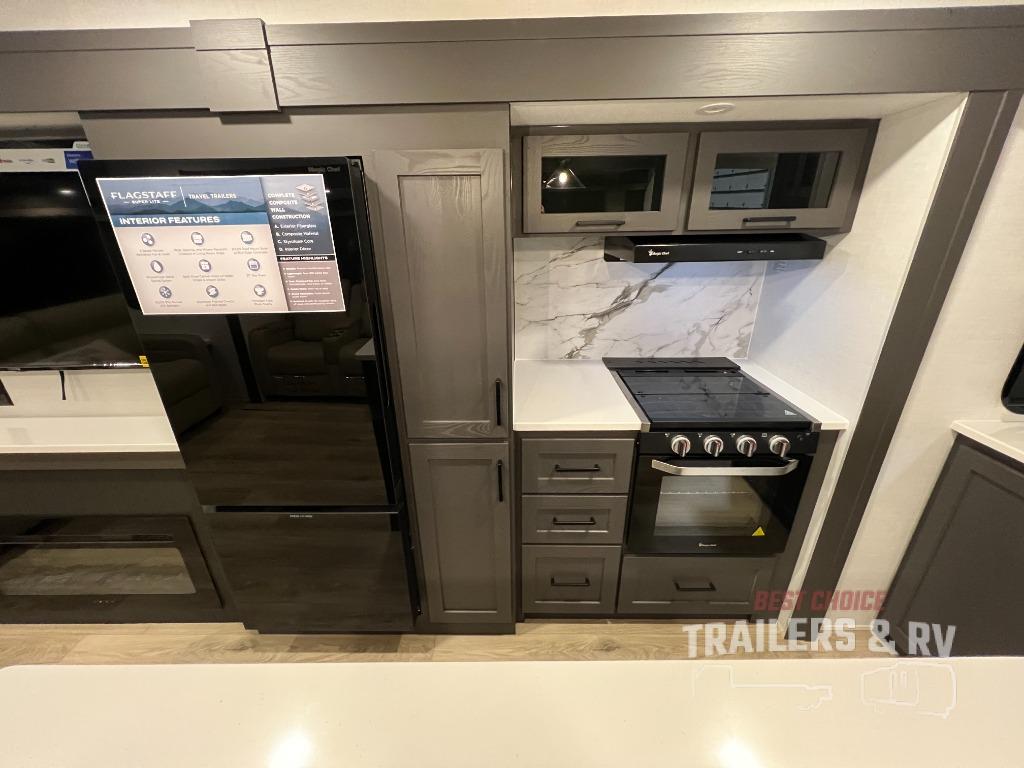With any Flagstaff Super Lite travel trailer by Forest River, you can enjoy quality features with lightweight towing! The Climate Protection Package includes radiant foil in the front cap, underbelly, and slides, plus there are 12V thermostat-controlled heated tanks for added protection. The complete composite wall construction and 6-sided full-aluminum frame is ultra durable, and the RoadTech tire pressure monitoring adds safety. Each model also includes the Coast to Coast Package that comes with slam latch baggage doors, a high gloss fiberglass cap, Goodyear Endurance tires, plus a 200W solar panel with an optional additional 200W panel for more off grid capabilities. Inside, you'll love the roller shades, solid surface kitchen countertops, a shower miser system, and many more comforts!