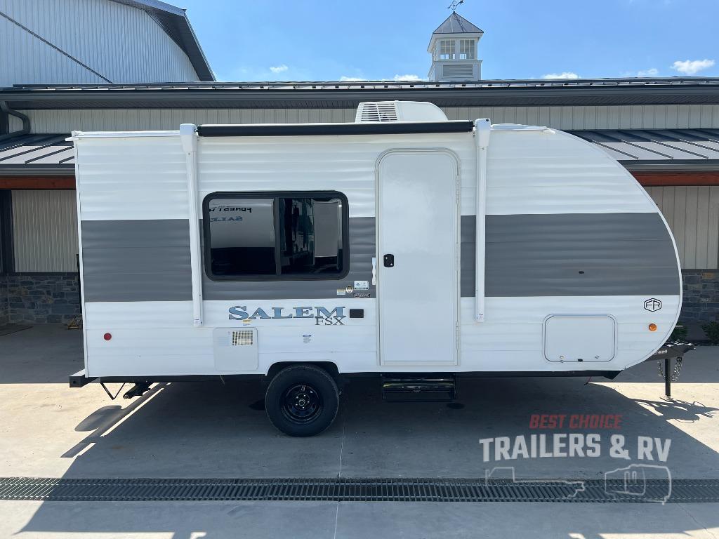 The Forest River Salem FSX travel trailers and toy hauler travel trailers are ultra comfortable and lightweight, perfect for first time or seasoned campers alike! You will love how easy it will be to relax with residential features that will make your space feel just like home, and the durable construction means you can enjoy your RV for years to come. There are a wide variety of floorplans to choose from, including couple's trailers, bunk models, and toy haulers, all with full bath and kitchen amenities and plenty of storage for all your gear!