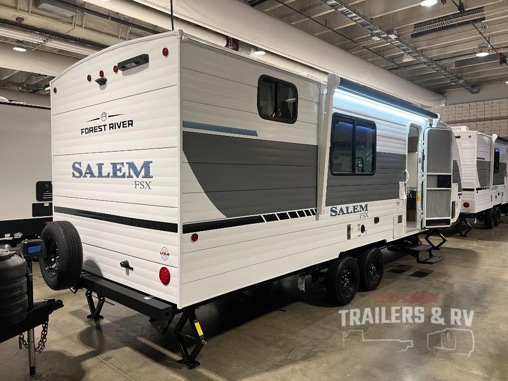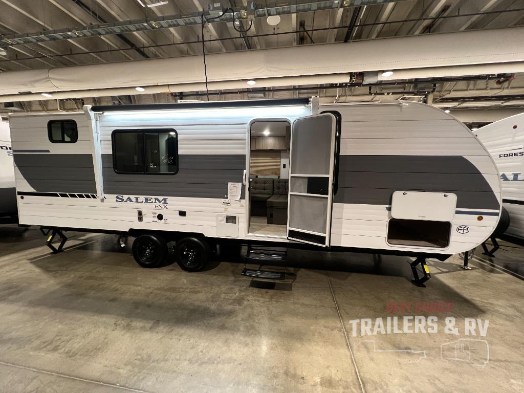 The Forest River Salem FSX travel trailers and toy hauler travel trailers are ultra comfortable and lightweight, perfect for first time or seasoned campers alike! You will love how easy it will be to relax with residential features that will make your space feel just like home, and the durable construction means you can enjoy your RV for years to come. There are a wide variety of floorplans to choose from, including couple's trailers, bunk models, and toy haulers, all with full bath and kitchen amenities and plenty of storage for all your gear!