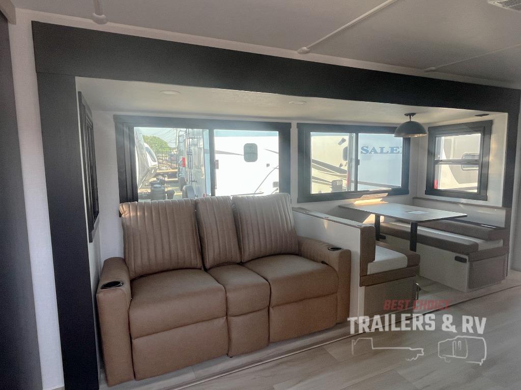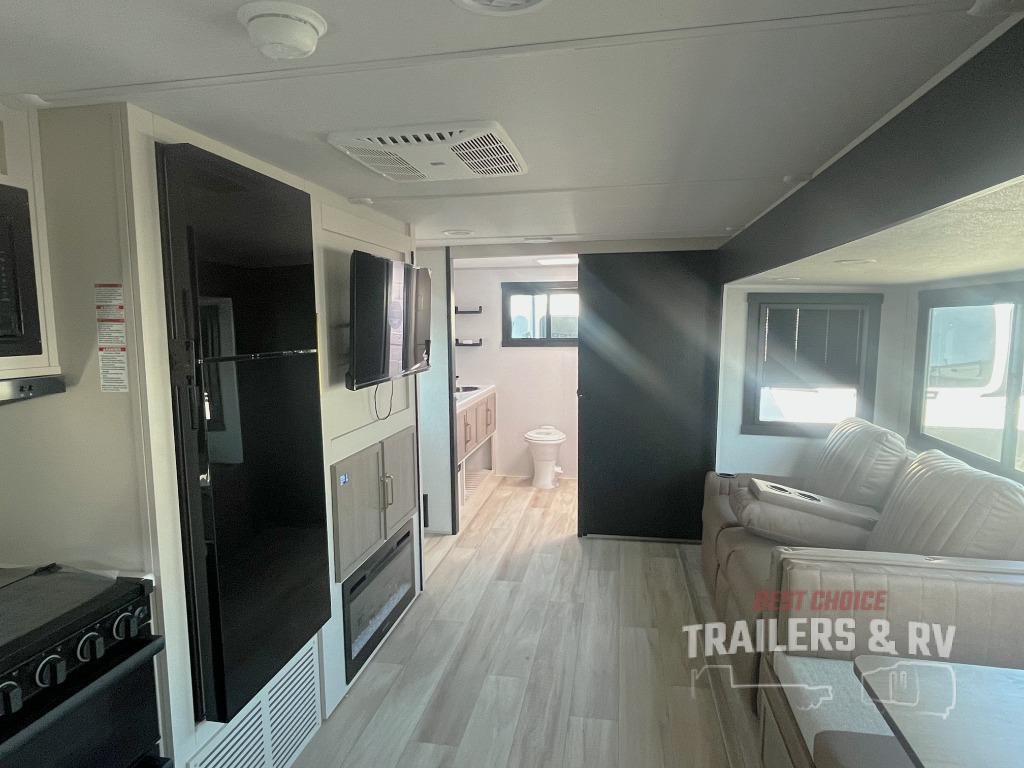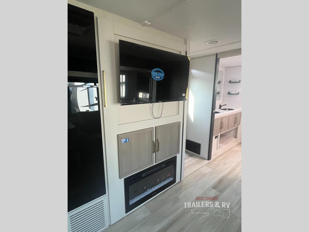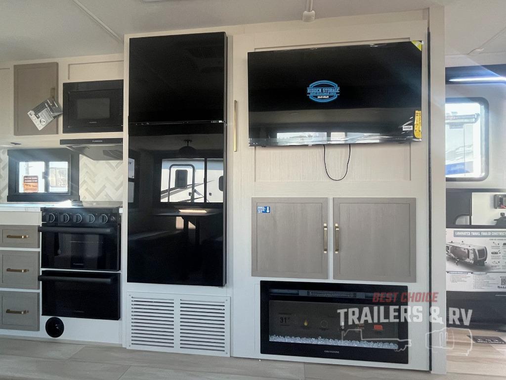 Once you step inside this spacious Salem Hemisphere Hyper-Lyte travel trailer, you'll want to take it out every other weekend for fun with your friends or family! The large slide out opens up the living and kitchen area and allows everyone to move around freely. The chef of the family can prepare dinner on the three-burner range, and they'll love having hidden storage behind the entertainment center for canned goods, snacks, and more. After a day at the lake, get cleaned up in the full rear bath before heading to the living area to relax on the theater seating while you watch a show on the 40" LED TV with a fireplace below. This trailer includes a front private bedroom with a queen bed with Versa-Tilt and space to walk around the bed. You can easily store all your hiking gear in the Texas sized pass-through storage, and cold drinks can go in the outdoor refrigerator!
