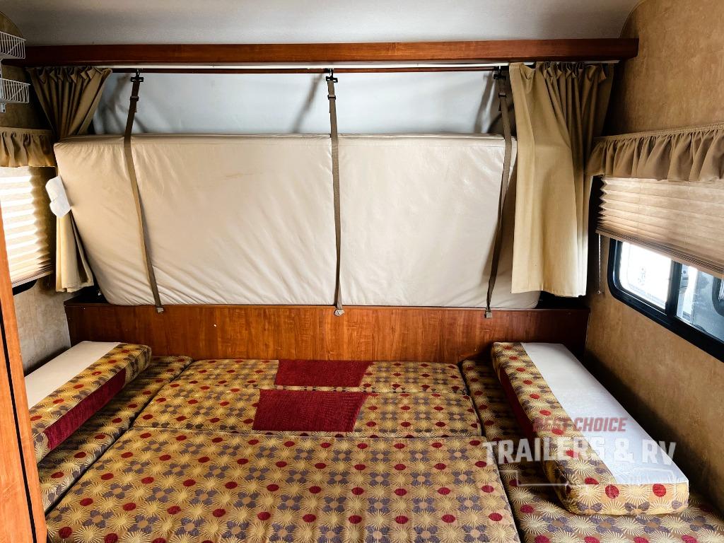 Expandable Jayco Jay Feather Sport Trailer, Rear & Front Tent Beds, Bath w/Corner Shower, Toilet, Lav., Overhead Cab., Refrig./TV Shelf, Booth Dinette, Overhead Cab., Single Galley Sink, 3 Burner Range, Microwave, J-Steel Sofa w/Overhead Cab., 10' Awning & More.