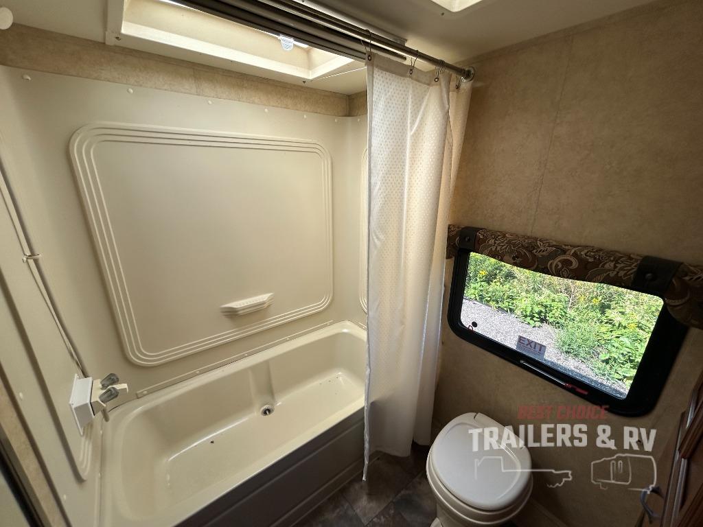 You will enjoy the space provided with double slides opposite one another with a slide-out u-shaped dinette and sofa with overhead storage. You can easily watch television with the swivel entertainment center nearby.