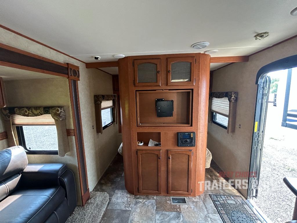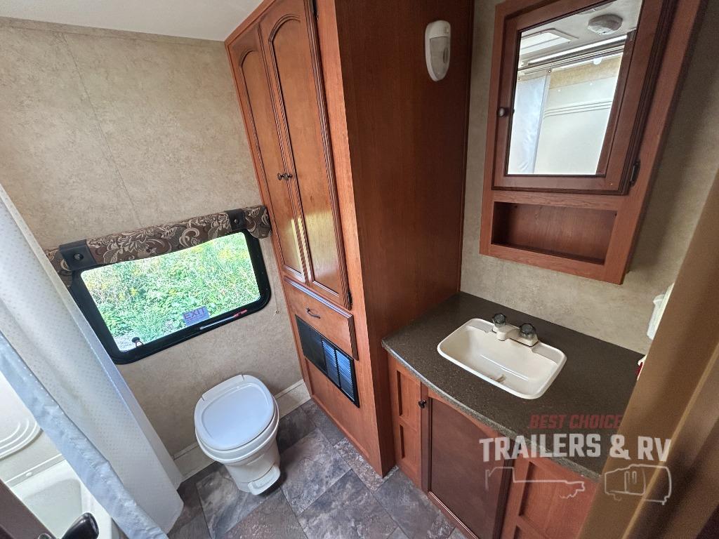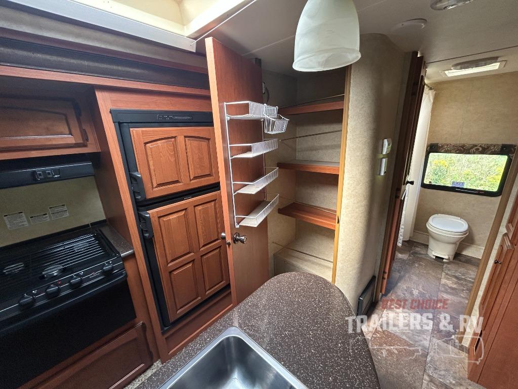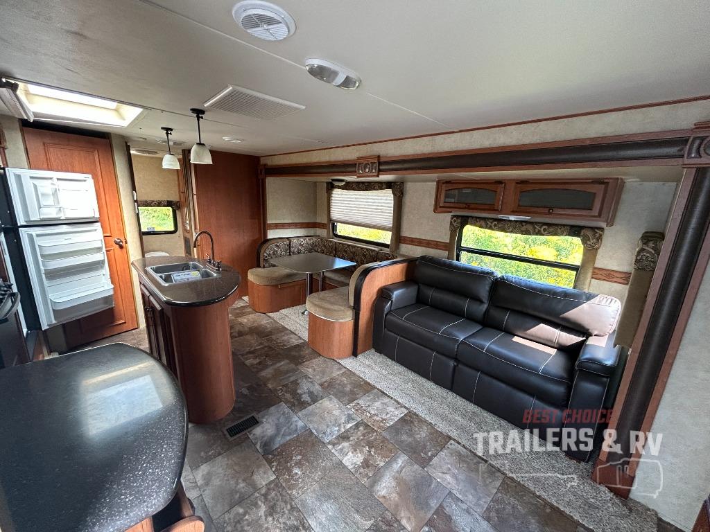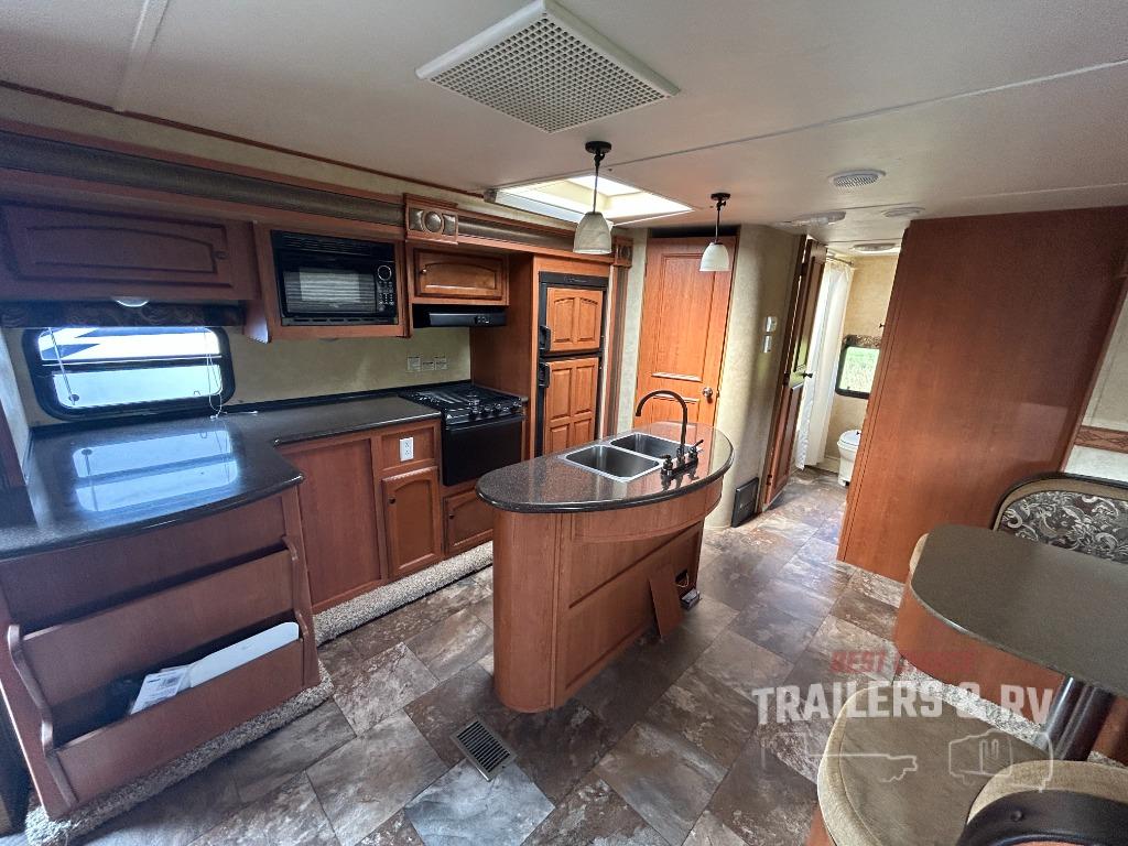 The outdoor kitchen provided is very convenient for those who enjoy cooking and eating outdoors. Step inside and see for yourself how great camping will be in this 29IKS Streamlite Champagne Series travel trailer!