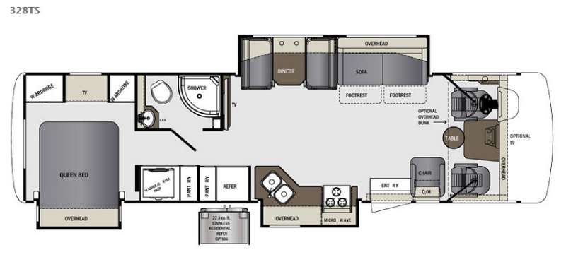 You even have the option to add a TV in the front of the motor home above the driver and passenger seats, or you can add an optional overhead bunk!