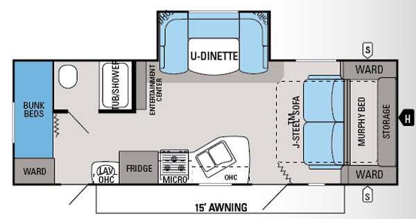 The Jay Flight Swift 234MBH travel trailer by Jayco offers a single slide and a rear bunk house.