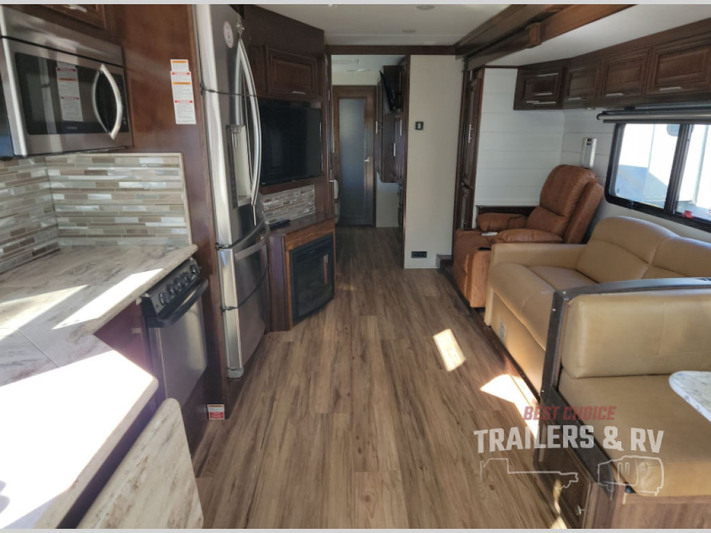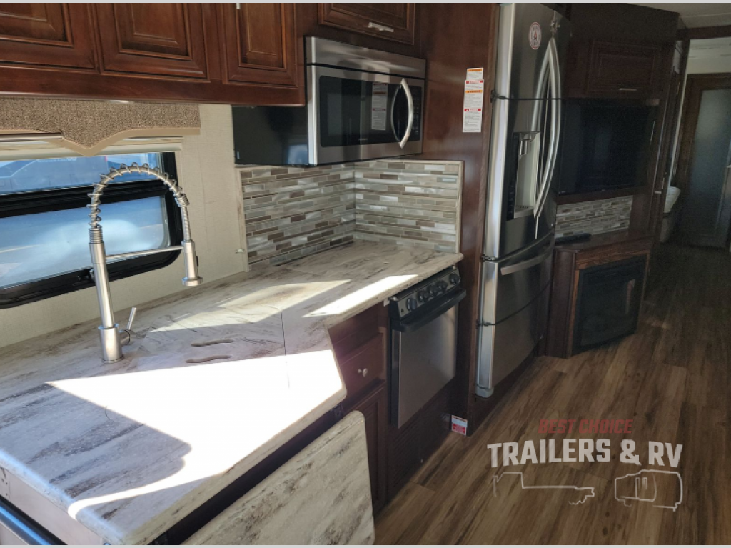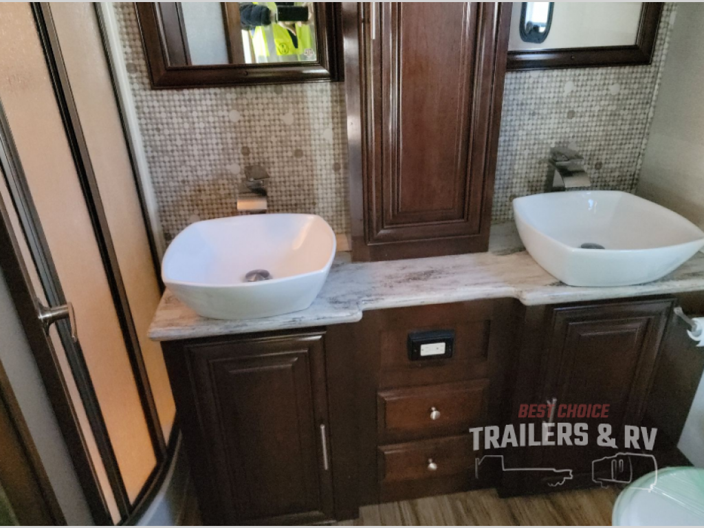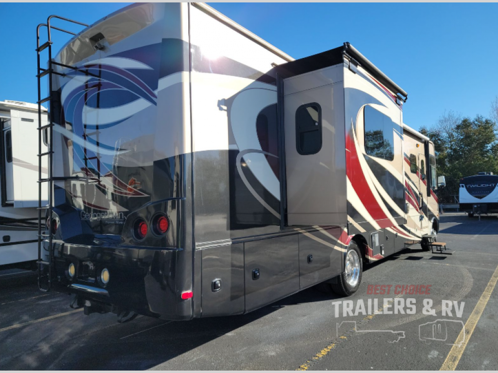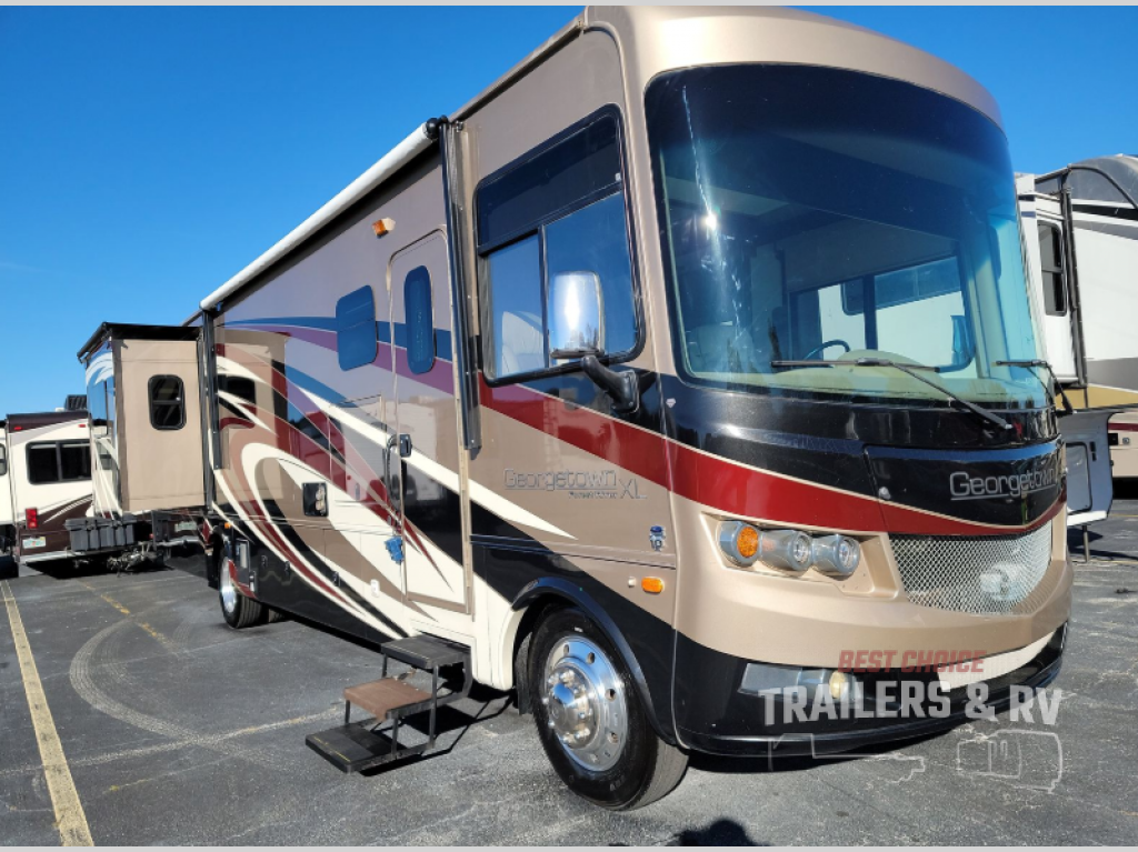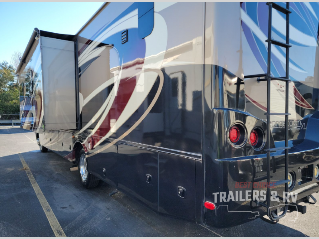 Step inside this Georgetown XL class A gas motorhome 369DS by Forest River to find comfort and luxury with double slides, dual sinks in the rear master bath, and a half bath for family and friends, plus more!