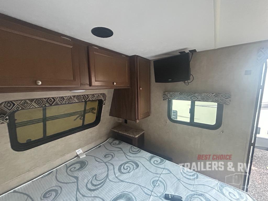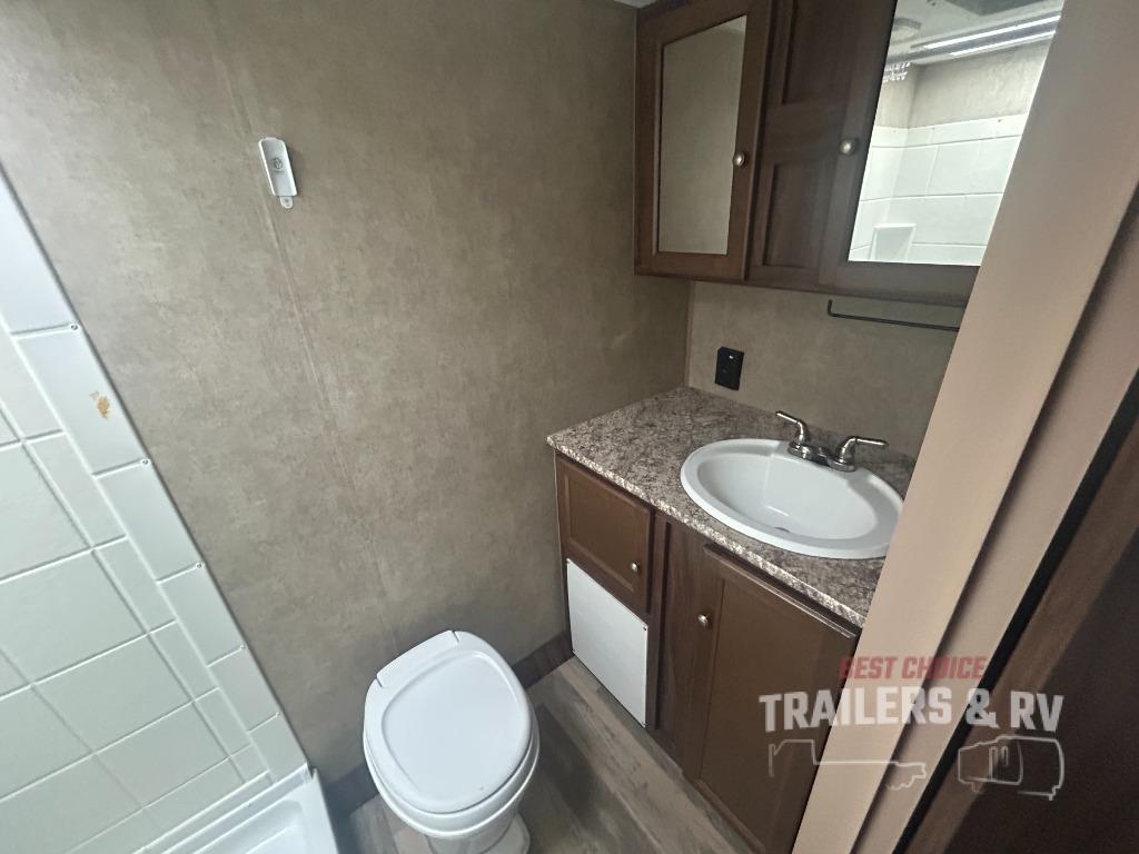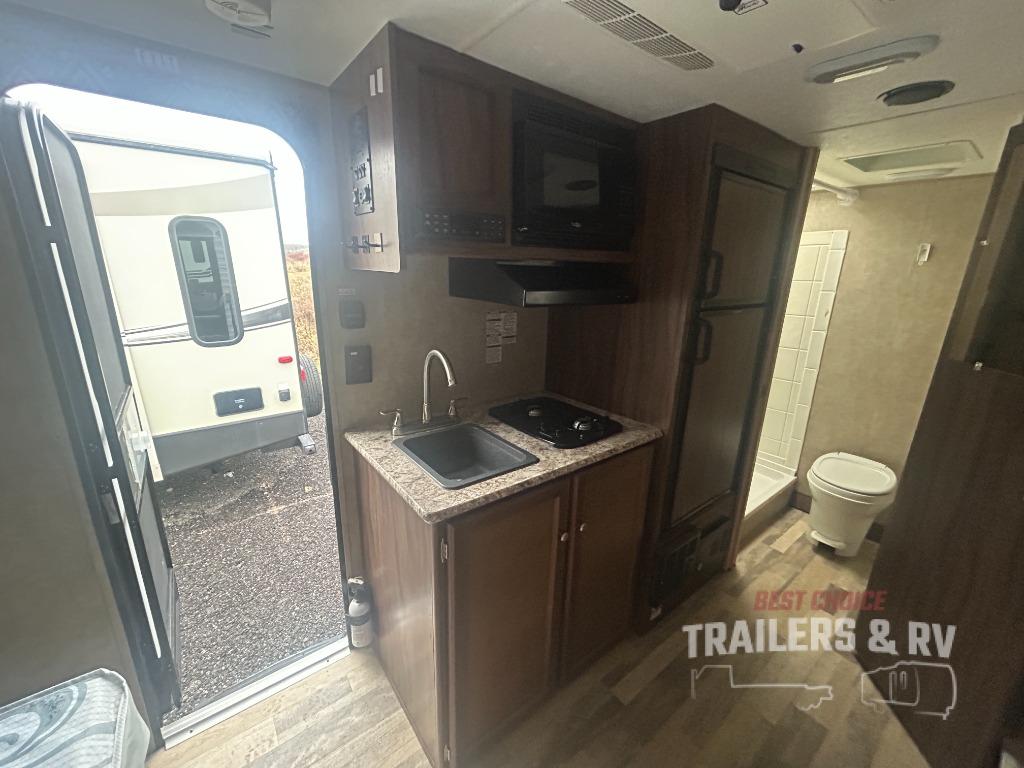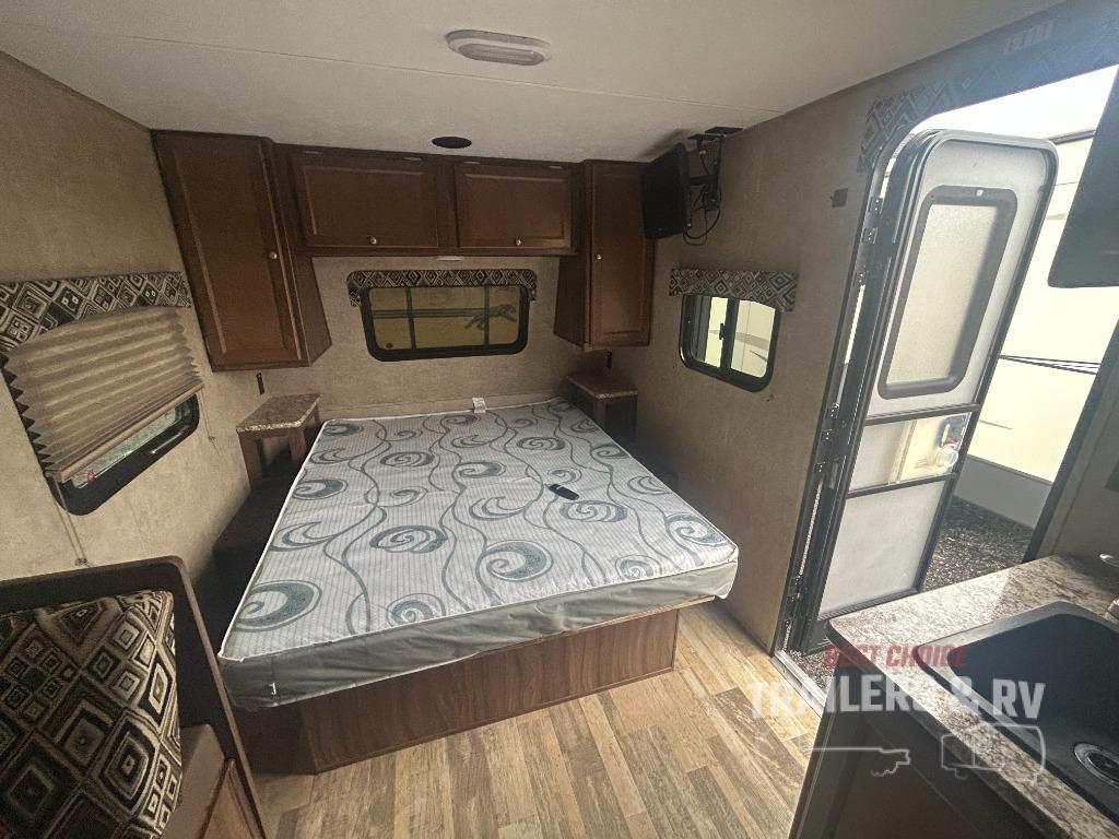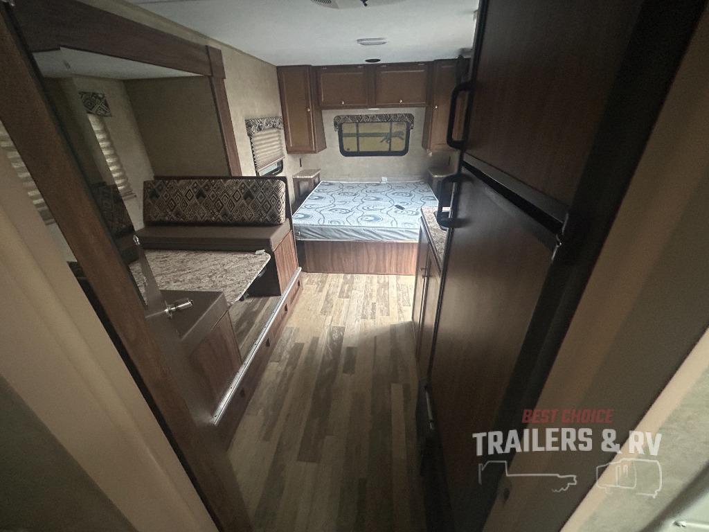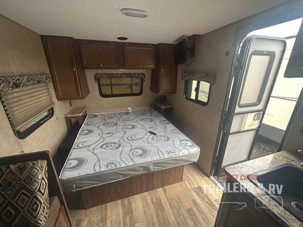When you are ready to camp with the comfort of a full bath, and a queen bed at night, take a look at this Clipper Ultra-Lite 17FQS travel trailer. A couple or smaller family will enjoy kitchen amenities, plenty of storage, and sleeping space for 3 in this trailer. The single slide out booth dinette offers more walking around space for entertaining guests. The rear full bath provides everything you need to get cleaned up, plus a medicine cabinet. It's time to see why this trailer is perfect for your family.
