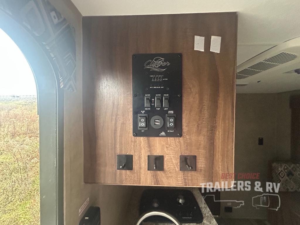 With any Clipper Ultra-Lite you can enjoy a smooth ride with a single Dexter E-Z Lube axle and aerodynamic front profile. Inside you will find 100% adhesion residential grade linoleum and residential laminated countertops for easy clean up after a long weekend of fun. You can enjoy the Jensen AM/FM Bluetooth stereo with App control and an interior command center as well. Come see why this travel trailer makes it convenient to take off and go at any time with your own family vehicle.