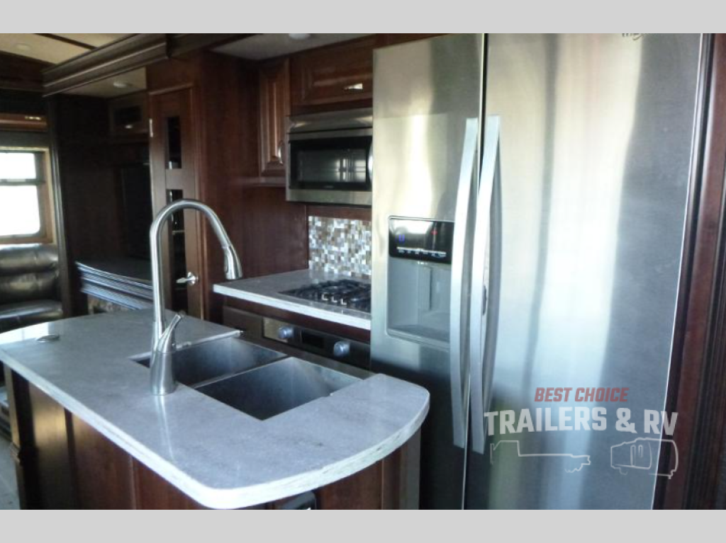 Each Jayco Pinnacle is equipped with the exclusive 5-Star Handling Package, an aerodynamic front and rear cap, an enclosed, insulated, and heated underbelly for four seasons of traveling, and a seamless composite roof covering making traveling down the road smooth and comfortable as well as each stay. The luxury fifth wheel also provides an arched interior ceiling, solid-surface kitchen countertops, an indoor/outdoor central vacuum system, an electric, thermostat-controlled fireplace, a whole coach water purification system, and so much more. Come choose your favorite luxury fifth wheel today!