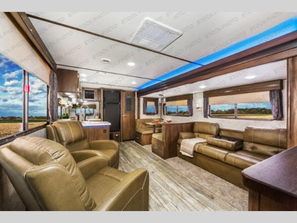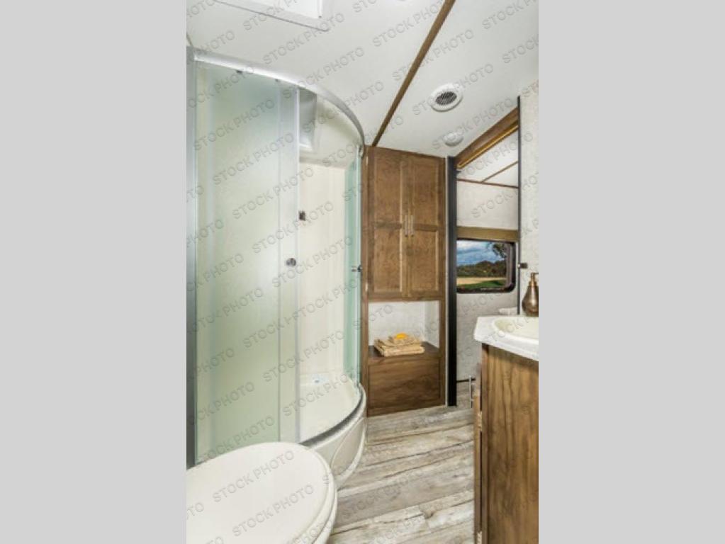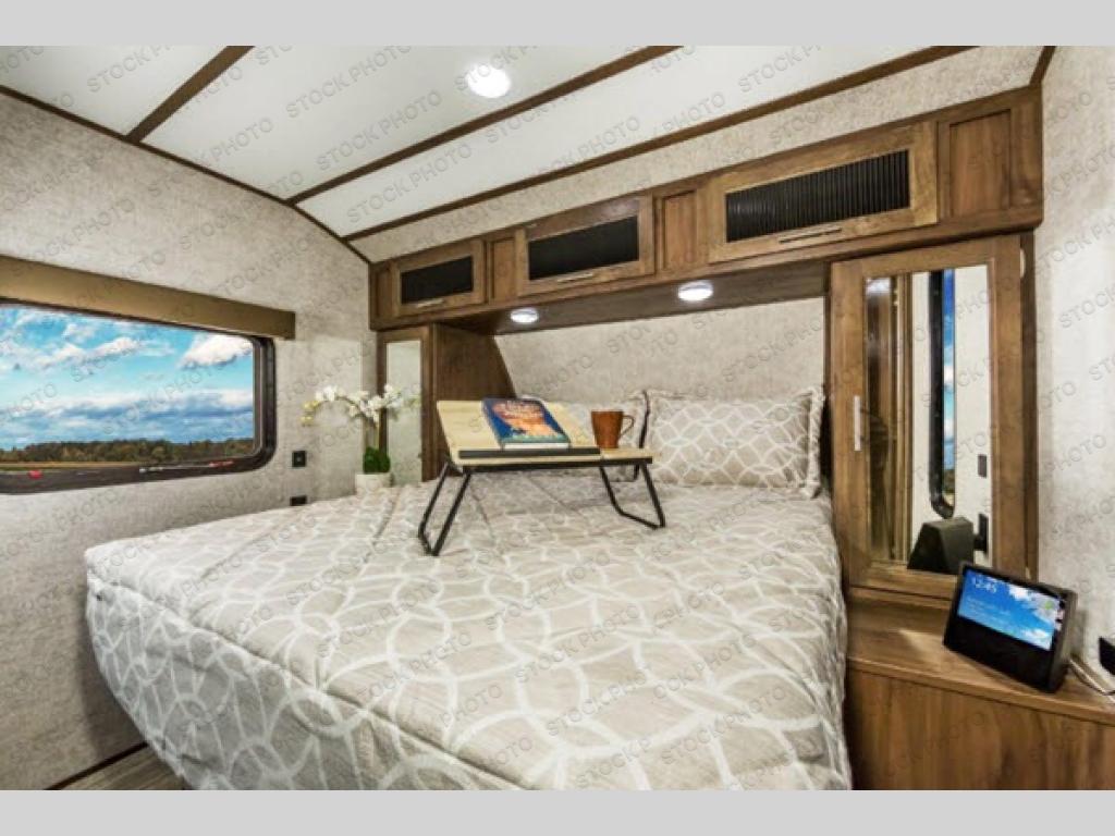 This Cherokee Alpha Wolf travel trailer is excellent for a smaller family or group of individuals who are looking to explore the country without losing the comforts of home. With a full kitchen and large pantry, you will find it easy to prepare dinner each evening, and the single slide that houses the booth dinette and sofa give you extra space to sit and chat with the chef. You will achieve complete relaxation on the queen-size bed in the front master suite, and the private bathroom entrance will allow you to quickly and conveniently get ready each morning.