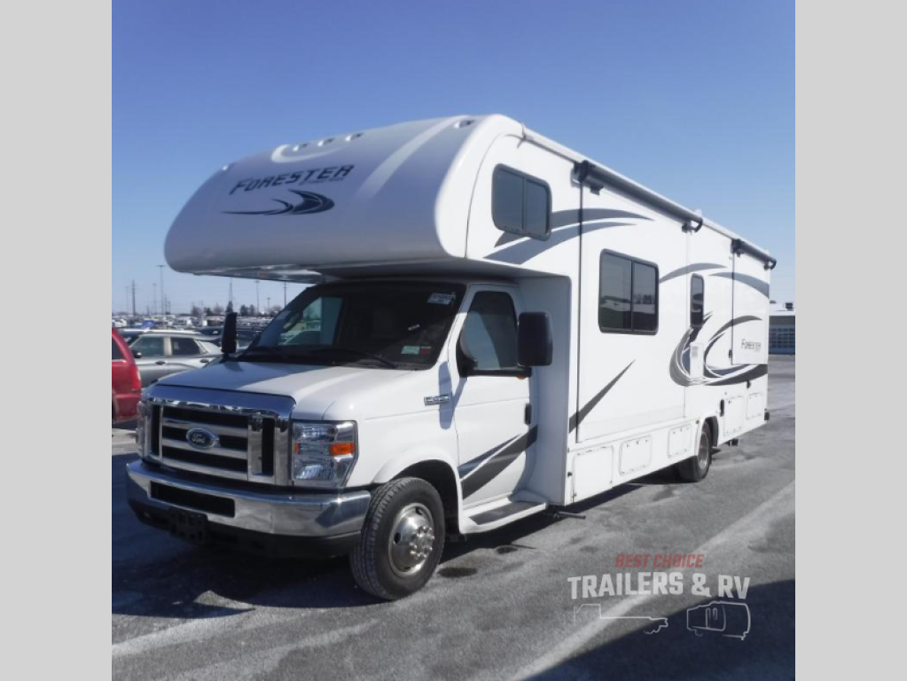 These Forest River Forester motorhome class C's are what you should be looking at when it comes to tasteful style and design. The split level design allows you to have a 7' ceiling in the living area and pass through storage underneath. The side view and back-up cameras will come in handy when parking your RV into your campsite. The inside of these motorhomes also have some beautiful colors to choose from that will make you feel like you are at home. You will enjoy whipping up your best meals with all of the stainless steel appliances, solid countertops, and even a microwave oven. All of the Foresters are "Certified Green" by TRA Certification.