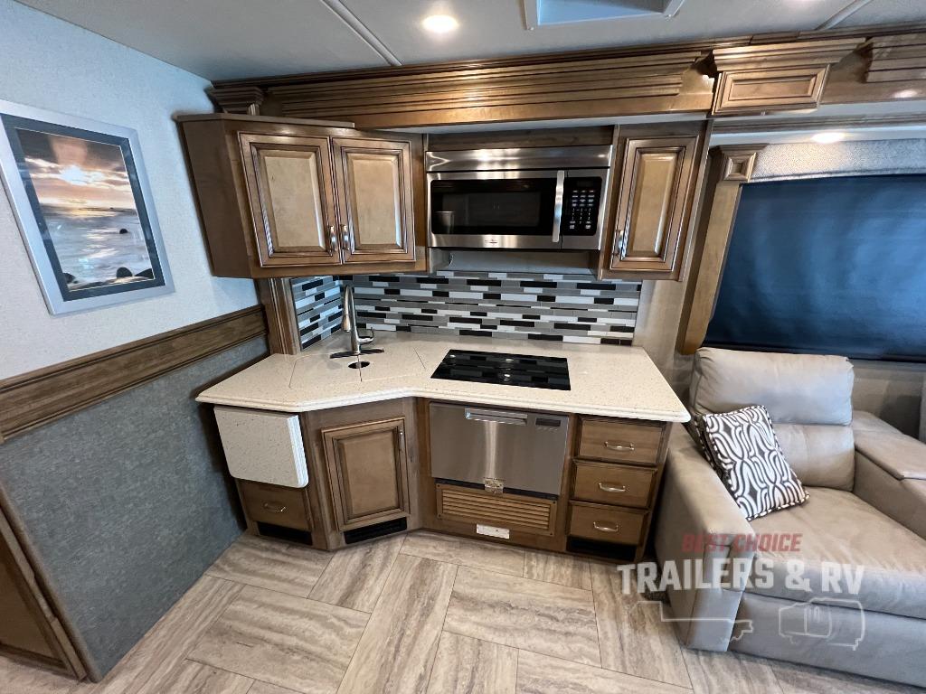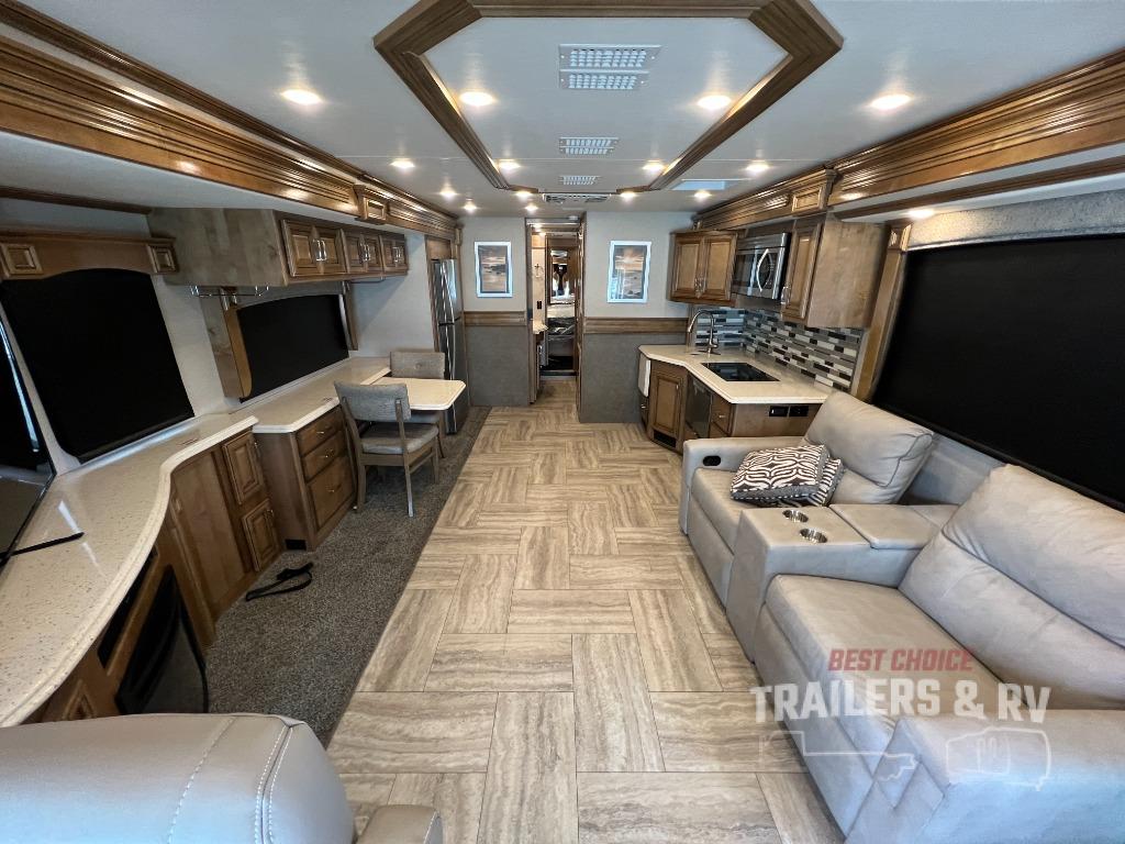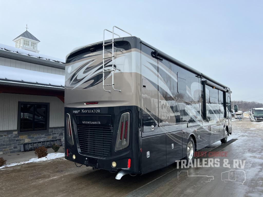 Whether you have a trip that will take you across the country or to your favorite vacation spot you will want a Holiday Rambler Navigator. These models have a Freightliner XCM Series chassis and a Cummins ISB 6.7L engine with a 340hp to ensure dependability when on the path less traveled. Along the exterior you will find durable features like the aerodynamic fiberglass cap with automotive headlights, a TPO roof, and dual pane large dark tinted frameless windows. You will also enjoy functional features like the 100 gallon fuel tank, the impressive exterior pass-through storage, and the on-demand water heater. Inside there are plenty of comforts throughout such as the Magnadyne M-10 10" touch screen stereo with navigation, a 19 cu. ft. stainless steel residential refrigerator, and an electric fireplace, plus a king Encore Series memory foam mattress with an adjustable head. Let a luxury Holiday Rambler Navigator class A diesel motorhome be your home on wheels where the scenery changes but the comforts from inside stay the same!