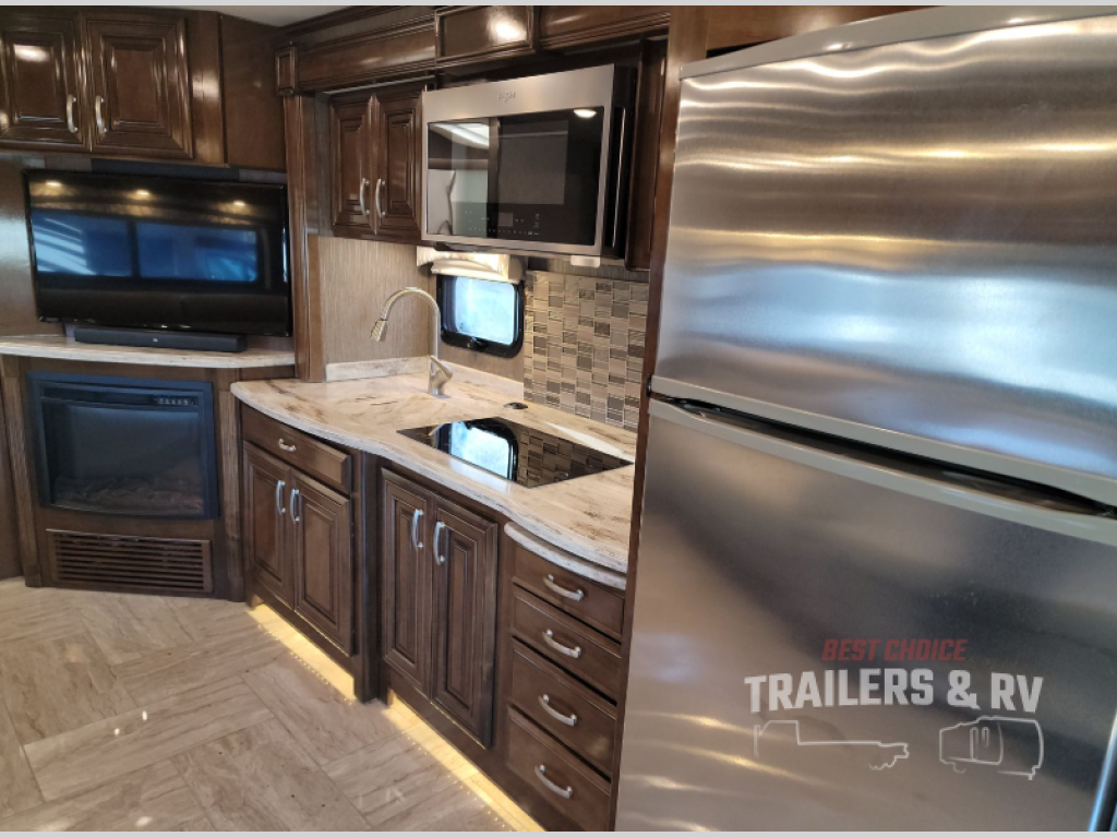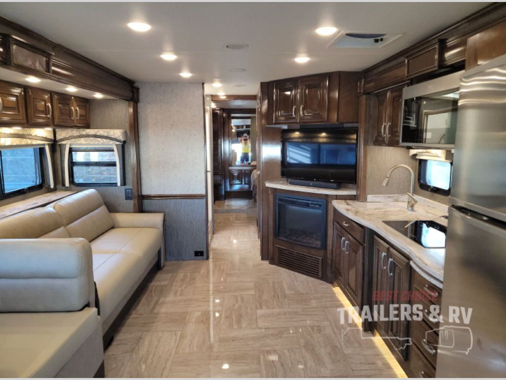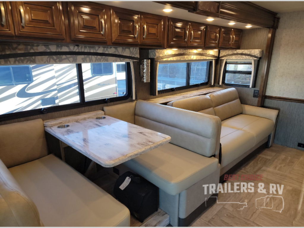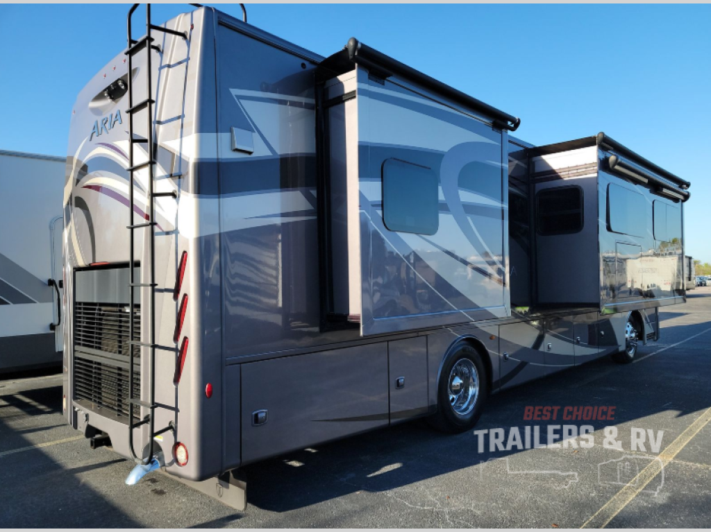 Been daydreaming about traveling to visit family and see new places? Just imagine you and your spouse riding on comfortable leatherette reclining/swivel power adjustable captain's chairs with your grandkids on the sofa bed and dinette thanks to the four additional seatbelts. The furniture will provide extra sleeping space as well, plus the drop-down overhead bunk will be someone's favorite spot when it's time for bed. Once at your destination, everyone can watch the 43" TV while keeping warm by the electric fireplace with remote control. There are full kitchen amenities, plus a split bathroom allowing more than one person to get ready at a time. Don't forget about your own oasis which includes an inclining king size bed for the perfect night's rest, storage for everyone's clothing, and a washer and dryer to keep your clothes clean the whole trip. Step inside this Aria class A diesel coach to find more features to love!