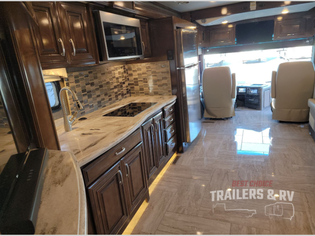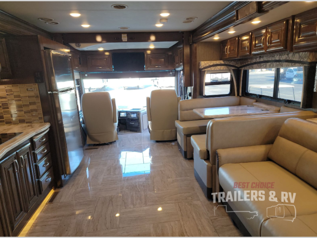 With any Aria class A diesel motorhome by Thor Motor Coach you will be impressed with the 100W solar charging system. The system helps maintain the coach batteries while the Bluetooth App allows for quick control of the charger right from your cell phone or tablet. There is a Onan RV QD 8000 diesel generator as well. You will find a lateral arm awning which allows you more room underneath without having to duck under the arms to get to the entry. Inside you will be able to relax and sleep on the Denver Mattress king size bed with Tilt-A-View inclining bed mechanism while reading a book or watching the 32" LED TV. You can even charge your electronics with the USB ports in the nightstands. Come choose your favorite coach today!