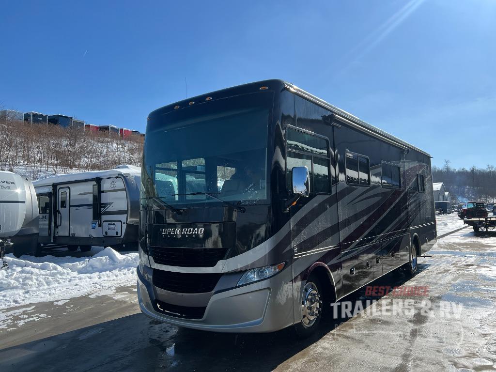 This Open Road Allegro Class A gas motorhome is a legendary RV built for the ages. From its spacious living area made possible by two slides, to its fully loaded master bedroom with a king bed slide, a flat panel TV, and two full walls of storage compartments, you won't be able to ignore the quality that has been built into this motorhome. Even the cab area is decked out with ultraleather power seating, an overhead flat panel TV, and a back-up camera with a color monitor.