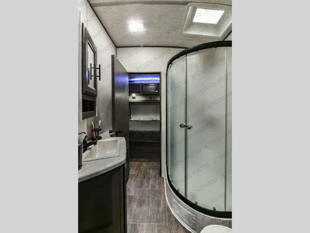 The Stryker toy hauler by Cruiser RV is all about family fun! With its functionality, design, and innovation, the Stryker was created with you in mind, and because the Stryker has a wide-body foundation, you will be able to bring along your biggest off-road toys. With deluxe additions like the residential furniture and designer accent walls, the interior portion of the Stryker is just as breathtaking as the high-gloss premium fiberglass exterior. The 30 gallon fuel station allows you to keep your toys ready to go when you are and each model is capable of fitting a four seat side-by-side so you can invite your buddies along for the ride!