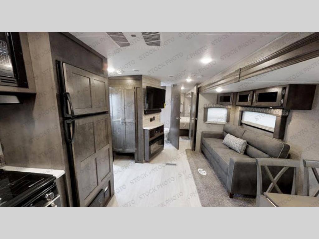 As you step inside this unit you will experience camping like never before! Just imagine a rear private bedroom with a queen Serta bed, nightstands on either side, and plenty of wardrobe space so that you can be dressed for any occasion. The two entry doors make for a smooth flow of traffic in and out of the unit. The best way to wind down your night is by grabbing a drink and lying back on the 67" hide-a-bed sofa in front of the cozy fireplace. If you want to experience the outdoors to its fullest, then get a camp chair and sit back underneath the 21' power awning with an LED light strip!