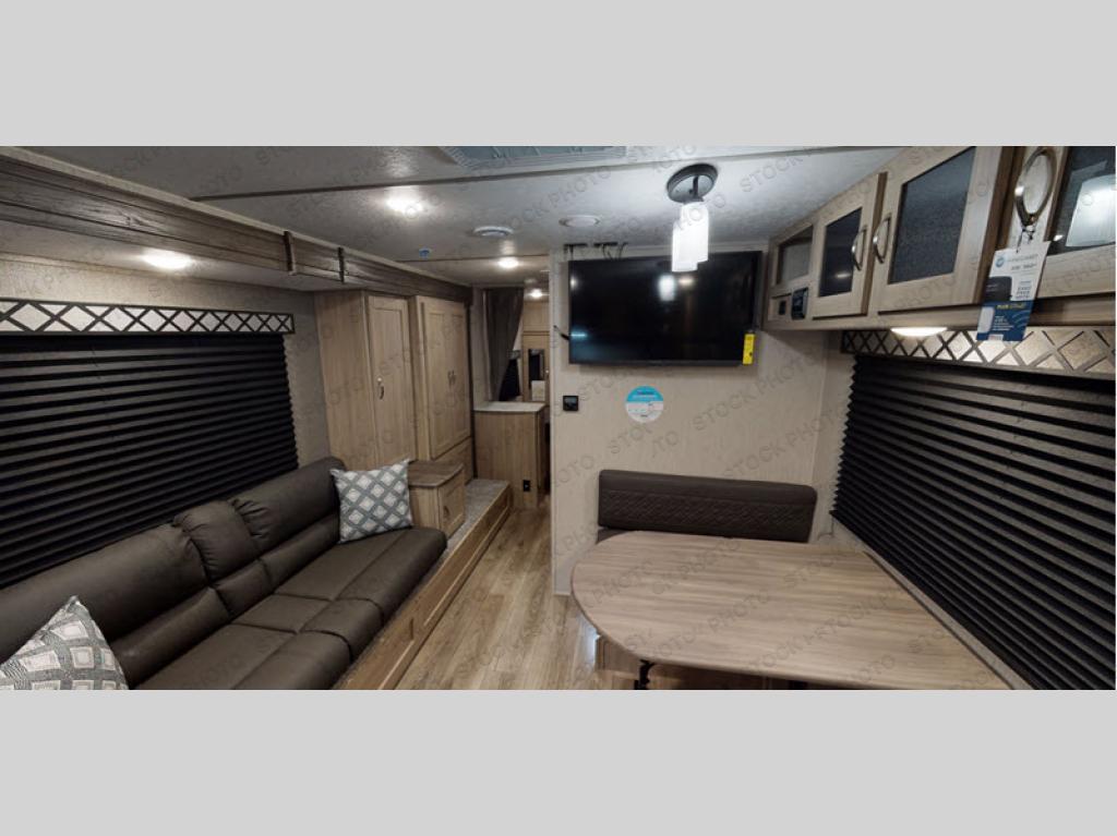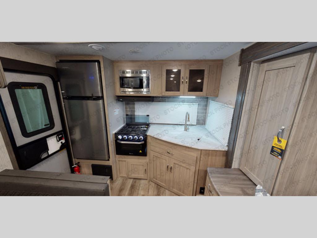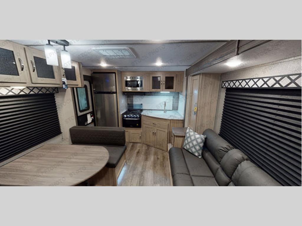 If you're looking for an RV to fit your family of five, this Freedom Express Ultra Lite travel trailer with a large slide out will be perfect for you. Within the slide out you'll find a sofa that can also be converted into additional sleeping space. There is a wardrobe with a bench so that you can store your shoes and jackets and have a place to sit down in order to put on those hiking boots! The booth dinette is right next to the LED TV, and the rear kitchen has all the amenities you need to prepare a home-cooked meal. This unit features a front bedroom with a queen bed that has vaulted under-bed storage and privacy curtains so that you can enjoy your own space.