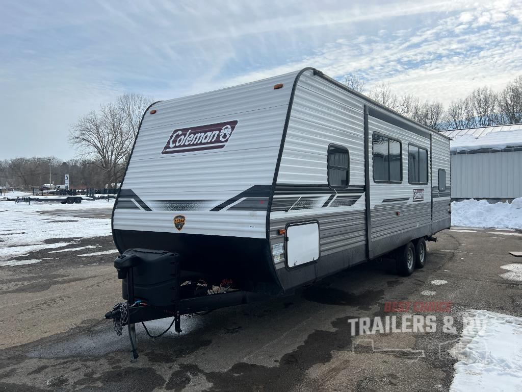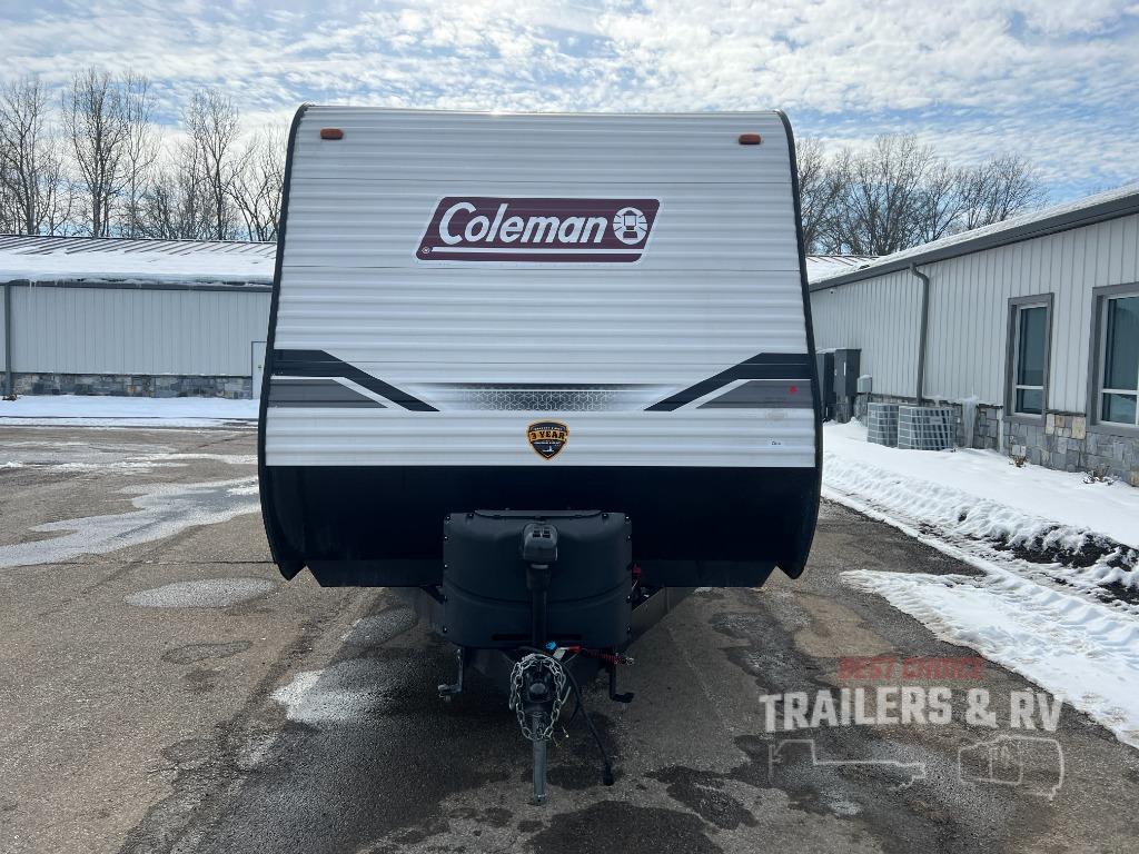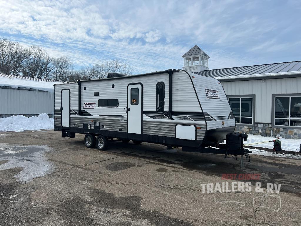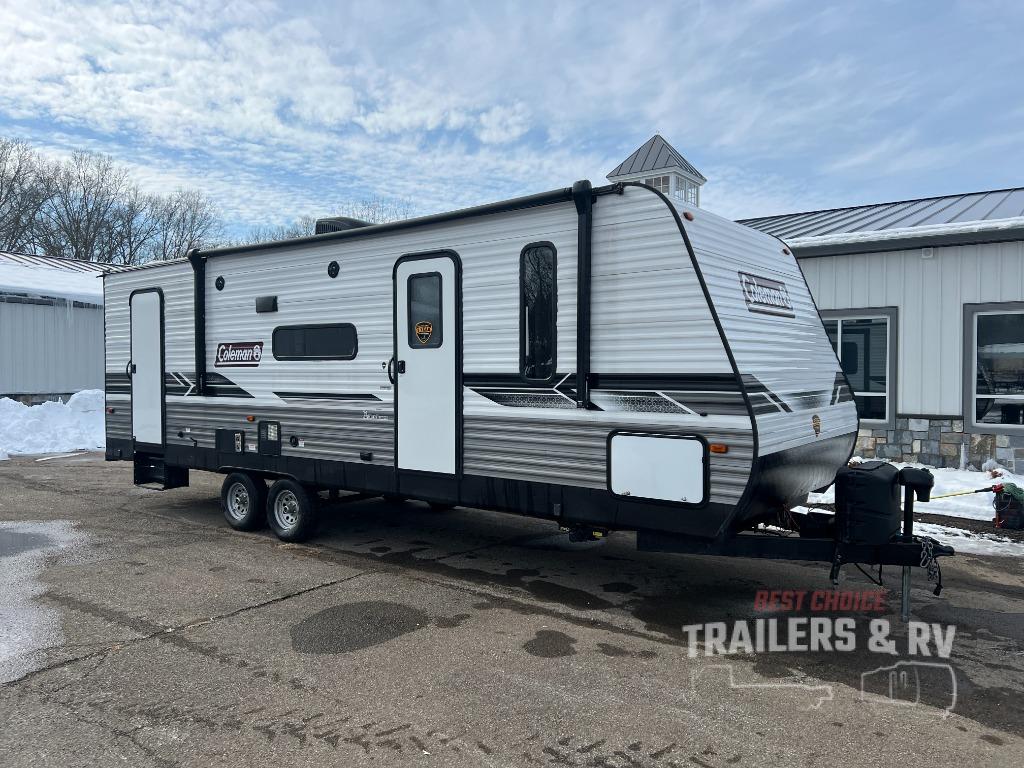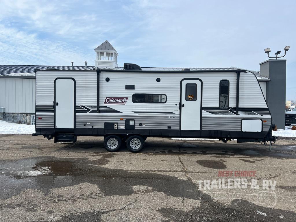 This Coleman Lantern Series travel trailer will provide you and your family with comfort and convenience while you enjoy the great outdoors. You might even meet other RV owners to camp with as well. From having your own private bedroom with wardrobe space and USB power outlet to your kids having double-size bunks, you will not be missing home at all. The cook can make meals while the others take turns getting ready in the full bathroom, and the second exterior entry door into the bathroom is a huge convenience for many reasons. Make this model yours today!