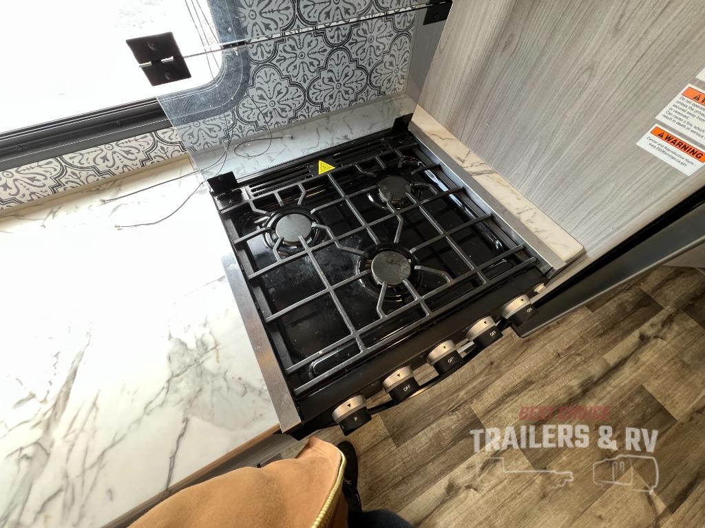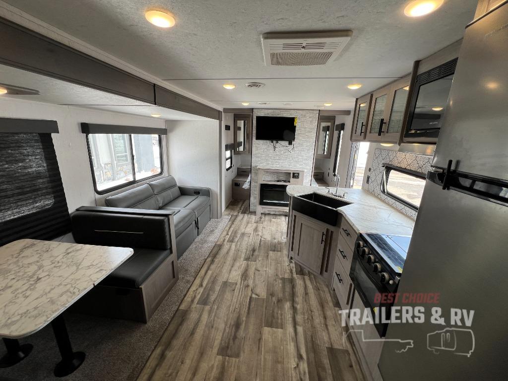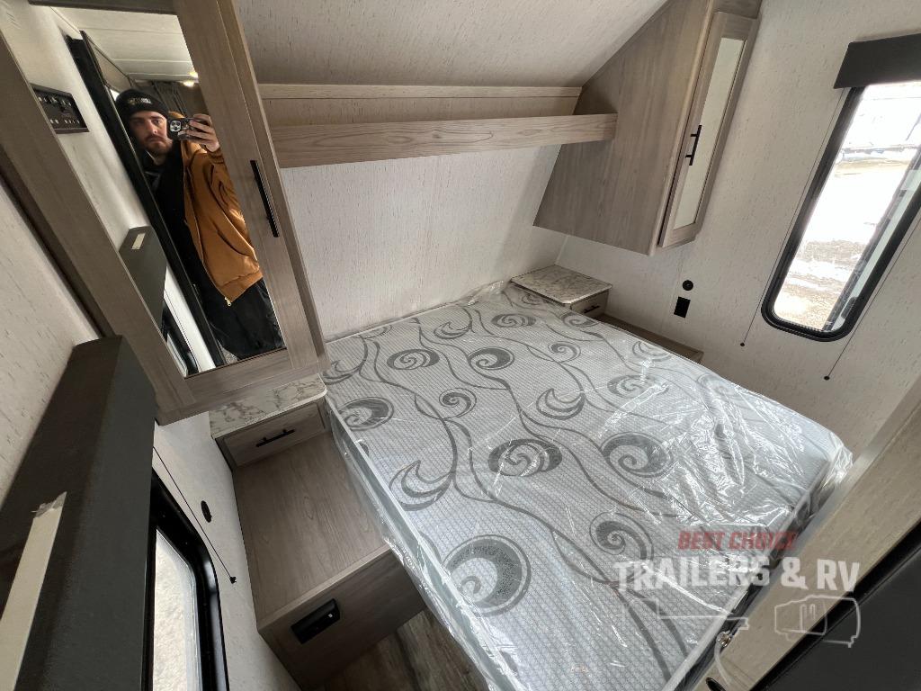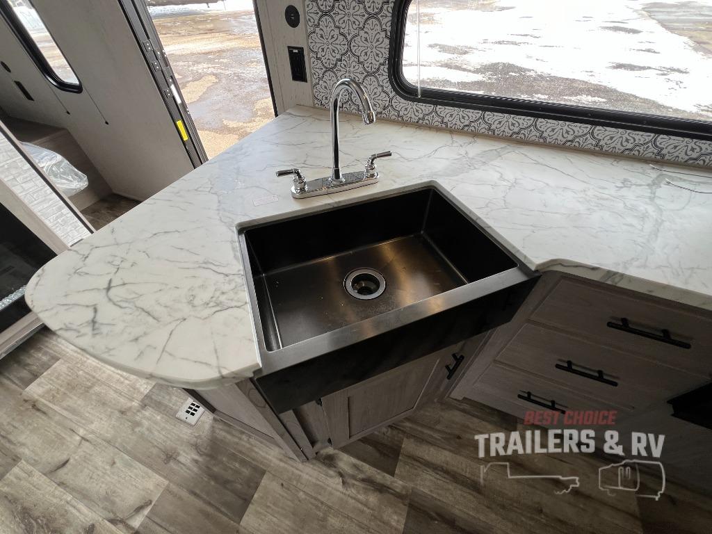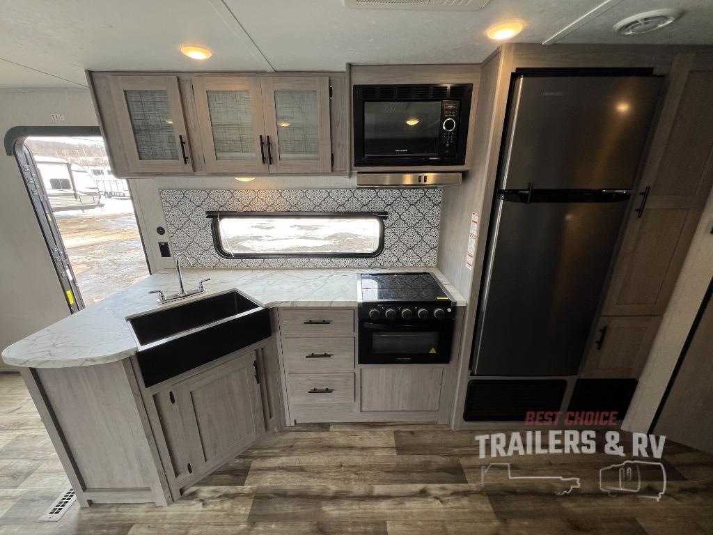 This Coleman Lantern Series travel trailer will provide you and your family with comfort and convenience while you enjoy the great outdoors. You might even meet other RV owners to camp with as well. From having your own private bedroom with wardrobe space and USB power outlet to your kids having double-size bunks, you will not be missing home at all. The cook can make meals while the others take turns getting ready in the full bathroom, and the second exterior entry door into the bathroom is a huge convenience for many reasons. Make this model yours today!