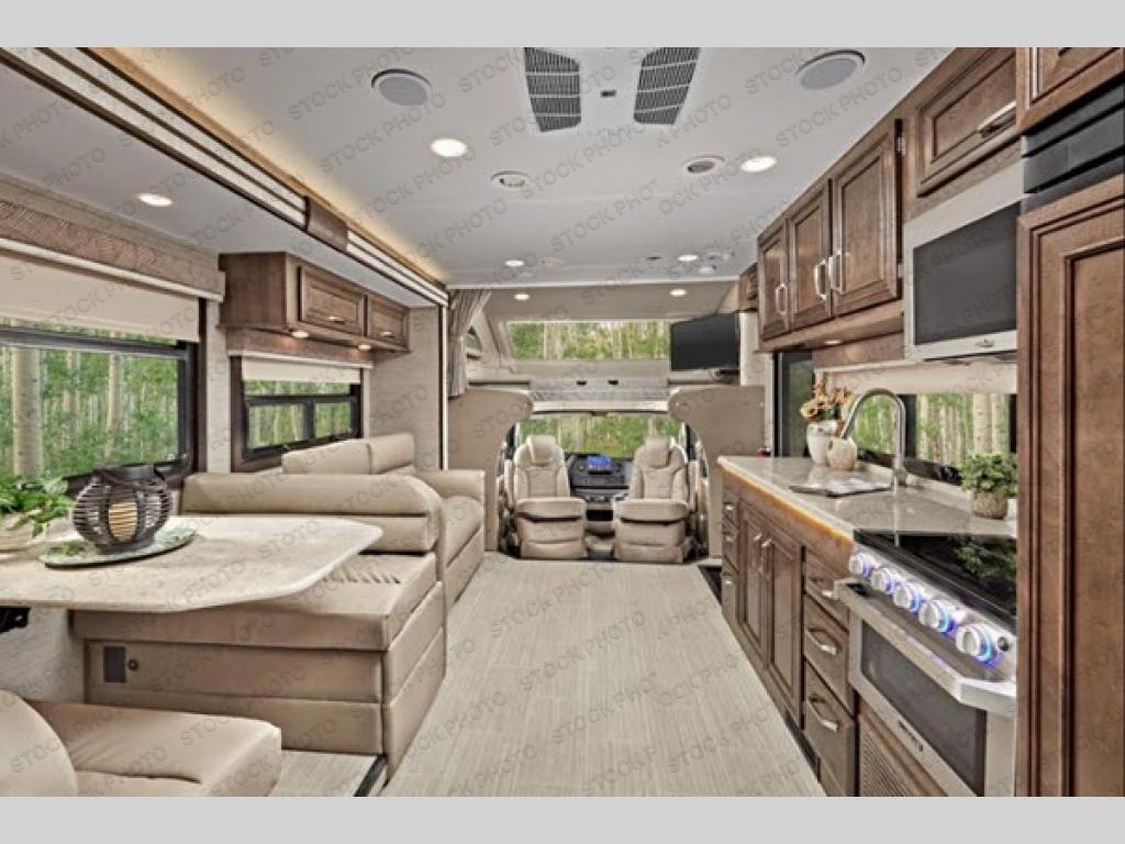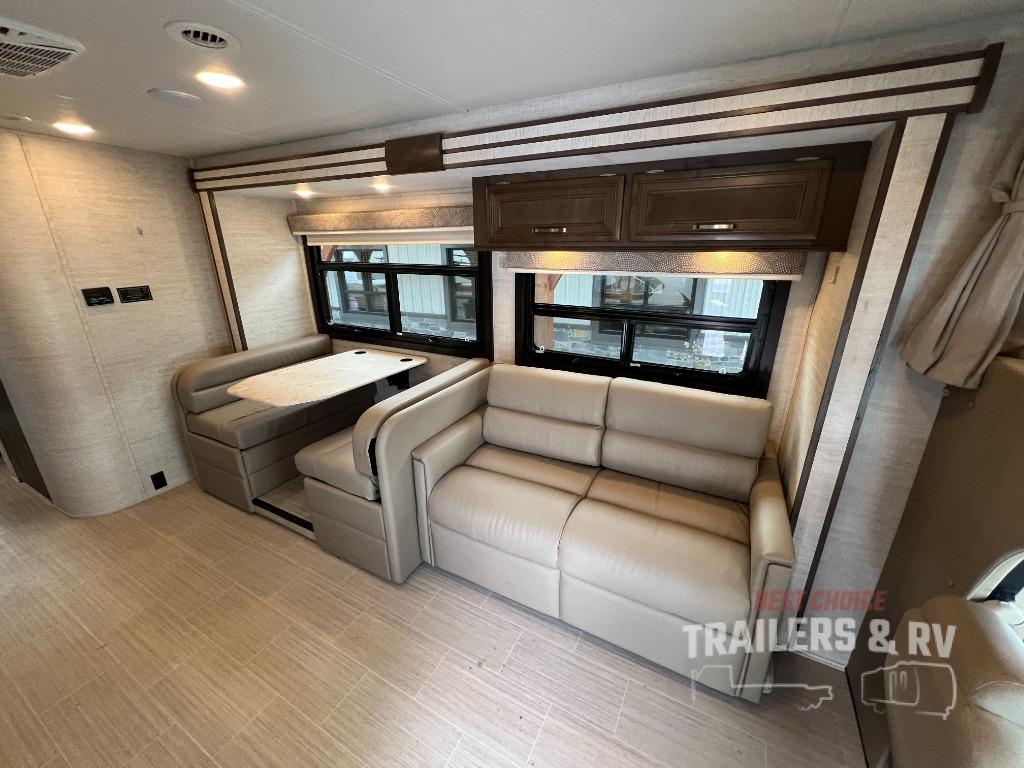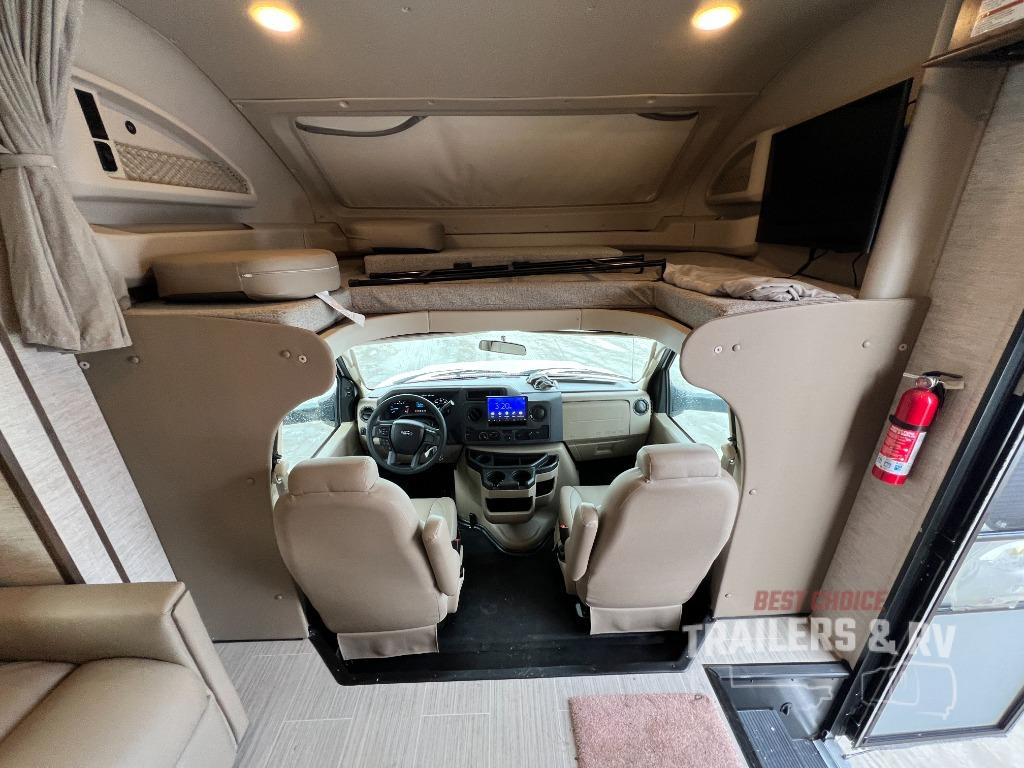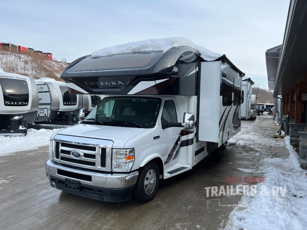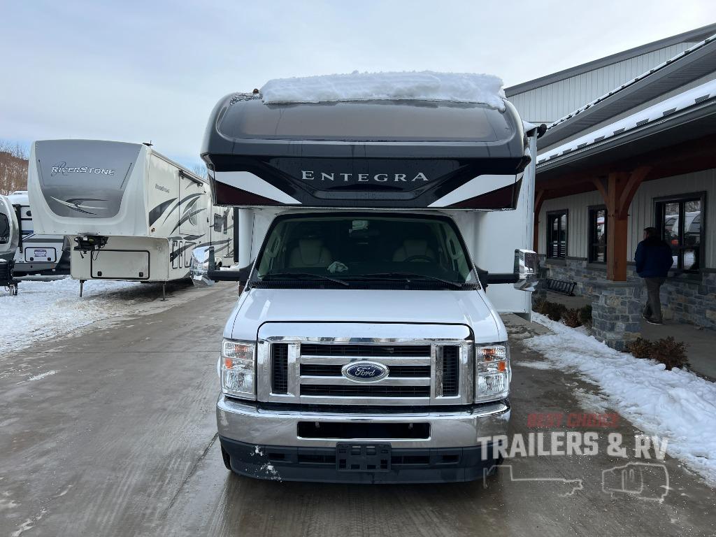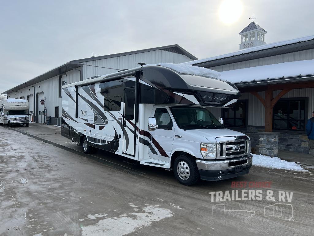 Entegra Coach Esteem Class C gas motorhome is equipped with E-Z Drive Elite offering a powerful blend of precise handling and renowned stability. The chassis also provides automatic hydraulic leveling jacks for easy setup, a tire pressure monitoring system for safety on the road, and a 7,500 lb. hitch for towing. The fully custom-molded ABS surround in the cab-over area with overhead bunk, the panoramic window for scenic views and the power shade when you have enough lighting, are all impressive features you will enjoy. The interior offers a 7-foot ceiling height, hardwood cabinet doors and drawers with ball-bearing drawer guides, blackout night roller shades, residential kitchen amenities, and much more! Get out and roam in your favorite Esteem today!