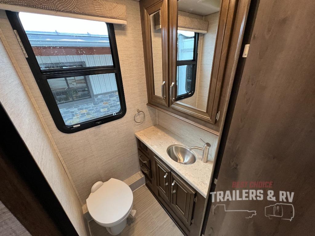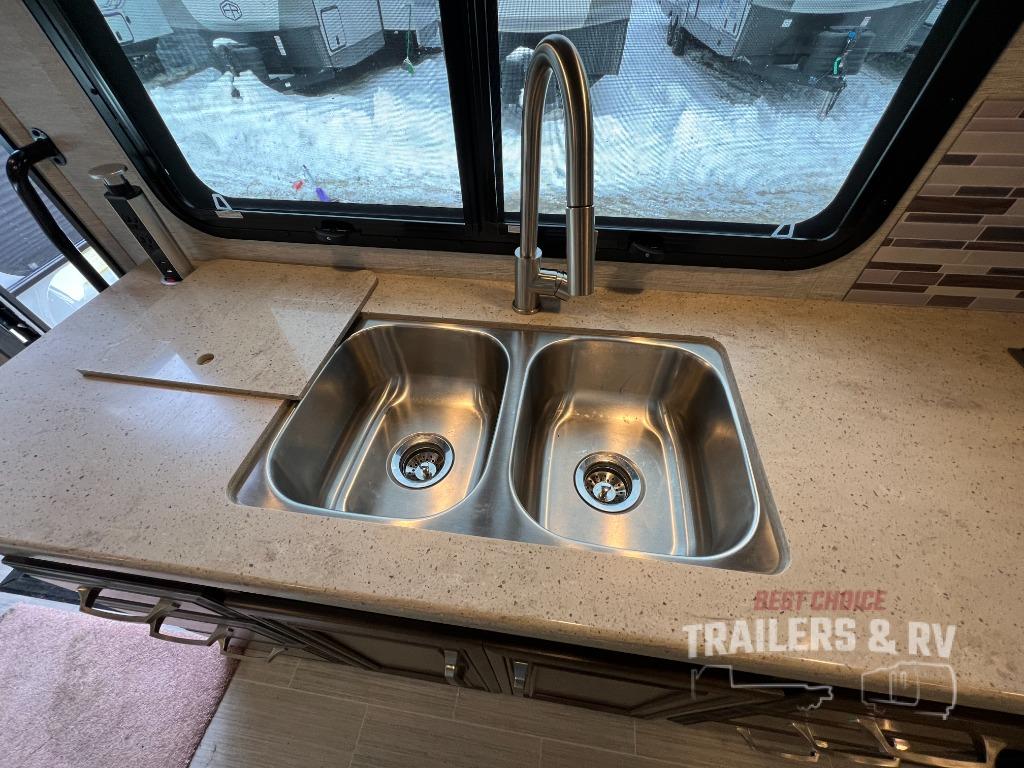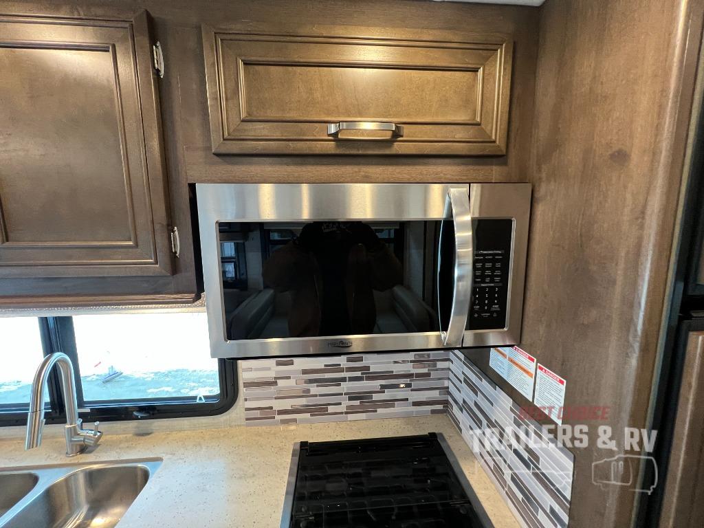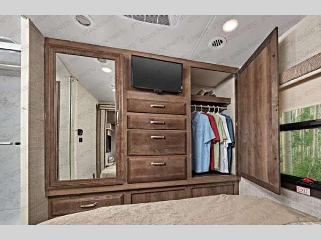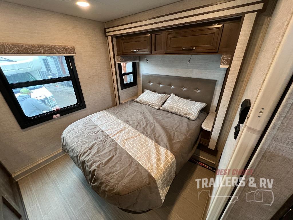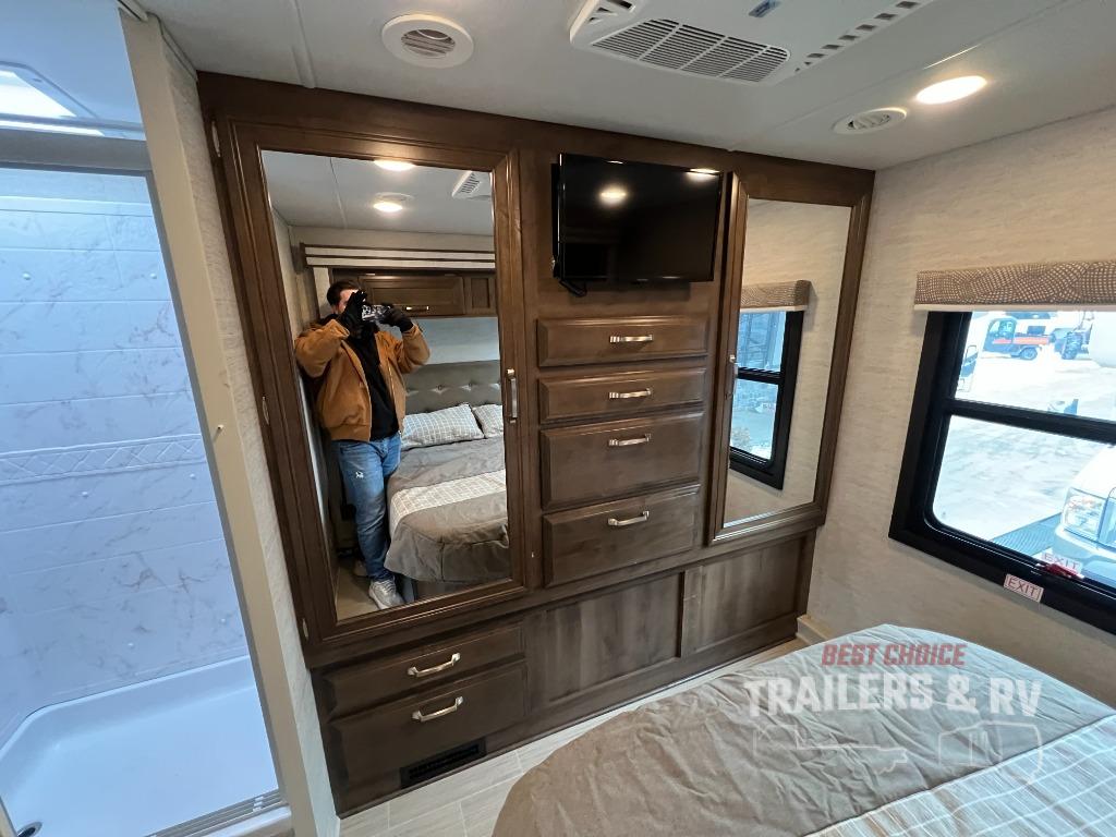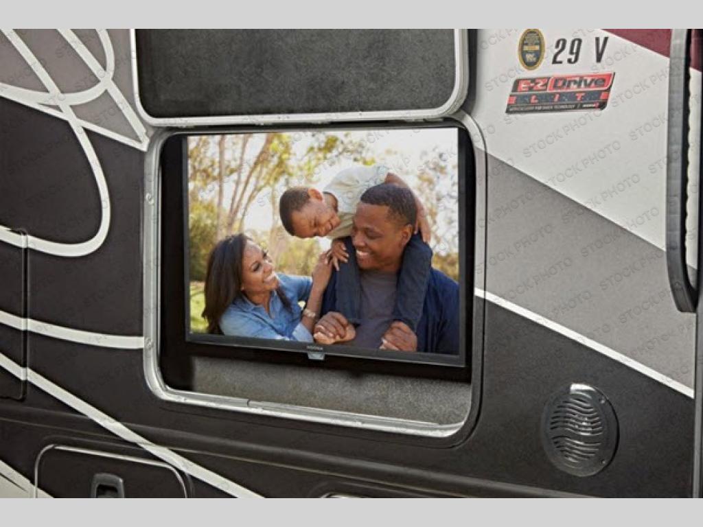 Don't book a hotel when you can have a home on wheels with this motorhome! It features a rear private bedroom with a queen bed across from a TV cabinet with wardrobes on either side of it. The split bathroom makes it easy for one person to wash up for dinner while another washes off the day in the 30" x 36" shower. Speaking of dinner, you can create your best home cooked meals with the Furrion all-in-one cooktop and oven, and store any leftovers inside the 8 cu. ft. double door refrigerator to enjoy once again after heating them up in the residential-sized microwave. You can relax either on the tri-fold sofa or grab a lawn chair and relax underneath the 16' electric awning with marine-grade speakers to crank up the tunes!