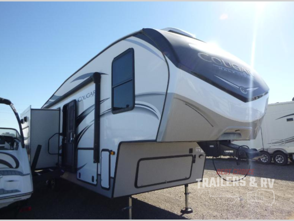 The Keystone Cougar Half-Ton fifth wheel and travel trailers are known as one of America's favorites for a reason! Some of those reasons are the exclusive features that come from Keystone, like the preparations for 4G and Wi-Fi, the in-floor heating ducts, and the Hyper Deck flooring. The Cougar Half-Ton has a Climate Guard protection package to keep you safe during inclement weather, and you'll also find an iN-Command Generation 3 with global connect. Use the 21" Furrion range with Piezo ignition to create all of those familiar meals from home, and add on the optional Off The Grid Solar Camping Package that comes with a roof-mounted solar panel, 30 AMP solar charging system, 2,000W pure sine inverter, and four inverted outlets.