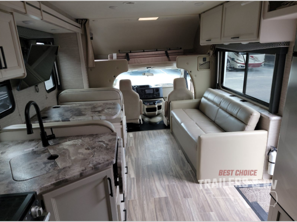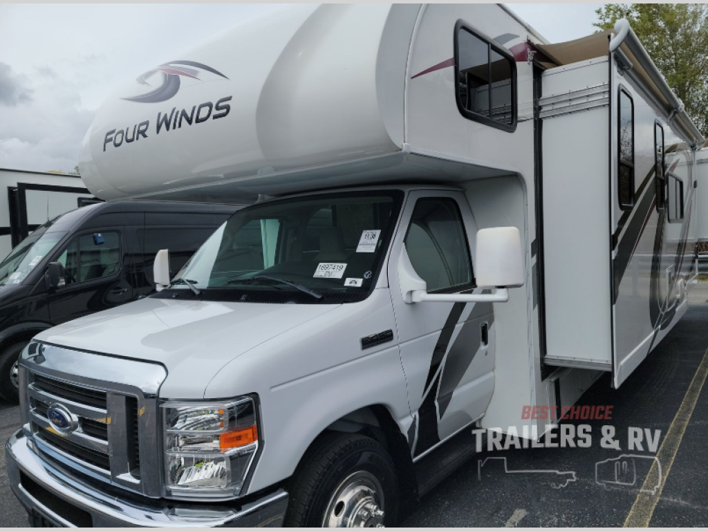 Each one of these Four Winds Class C gas motorhomes are equipped with everything you will want or need! Your adventures will be powered by a 7.3L Ford V8 engine with a 8,000 lb. hitch, and the welded tubular aluminum roof and sidewall cage provide a strong, durable motorhome. The touchscreen dash radio with a back-up monitor will make getting in and out of the campground a breeze, plus each model is SiriusXM ready so you can listen to your favorite tunes if you choose. These models are tech-filled with a Winegard ConnecT 2.0 that works as your WiFi router, 4G hotspot, and TV antenna. You will not only have a comfortable and convenient interior living space, but also a dreamy outdoor living space with the power patio awning with LED lighting, and all your gear can go in the lighted rotocast storage compartments!