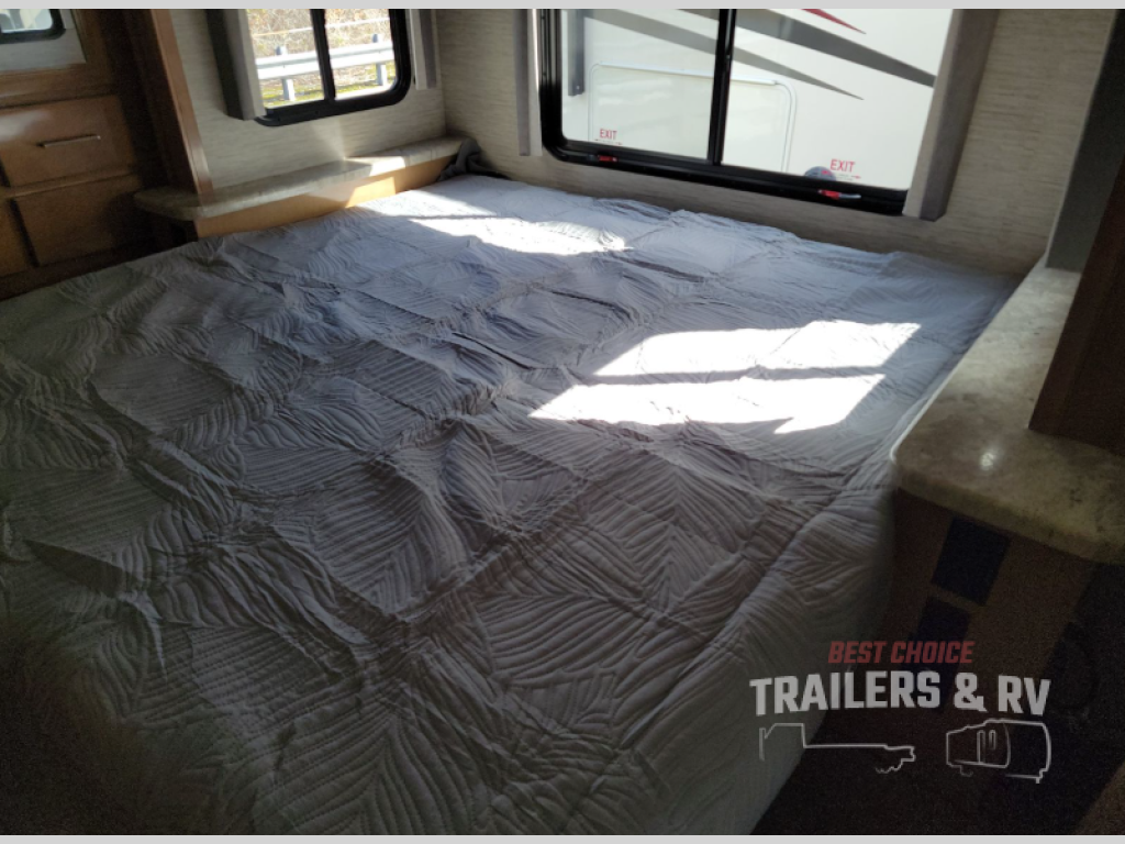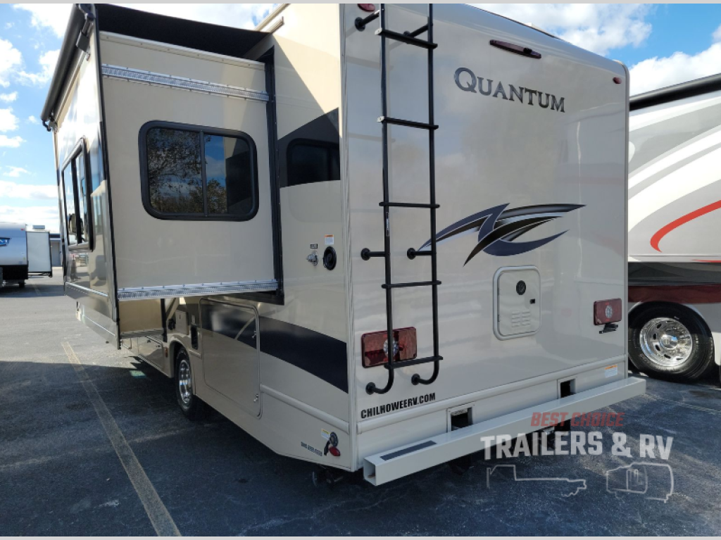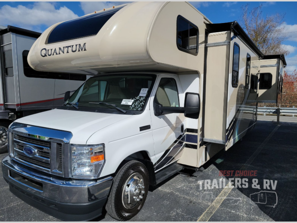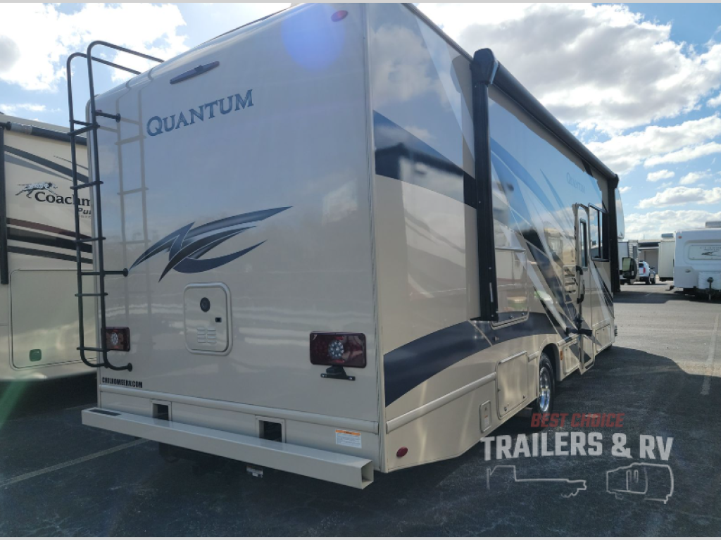 With any Quantum Class C gas motorhome, the construction includes a welded tubular steel floor, a welded tubular aluminum roof and sidewall cage construction, a premium one-piece TPO roof, plus black framed windows or frameless slider windows depending on the Quantum you choose. The interior offers decorative glass inserts in the kitchen overhead cabinet doors and kitchen accent countertop lights for the style, full extension metal ball-bearing drawer guides, plus a 7-inch touchscreen dash radio with a back-up monitor the driver will appreciate. The Platinum package comes standard and offers stainless steel wheel liners, premium window privacy roller shades, and an outside shower plus more! No more dreaming, you can choose your favorite Quantum and start your RVing lifestyle!