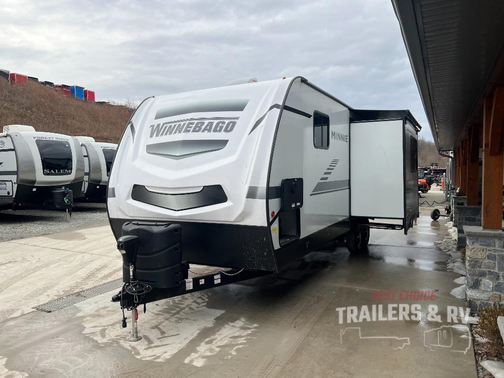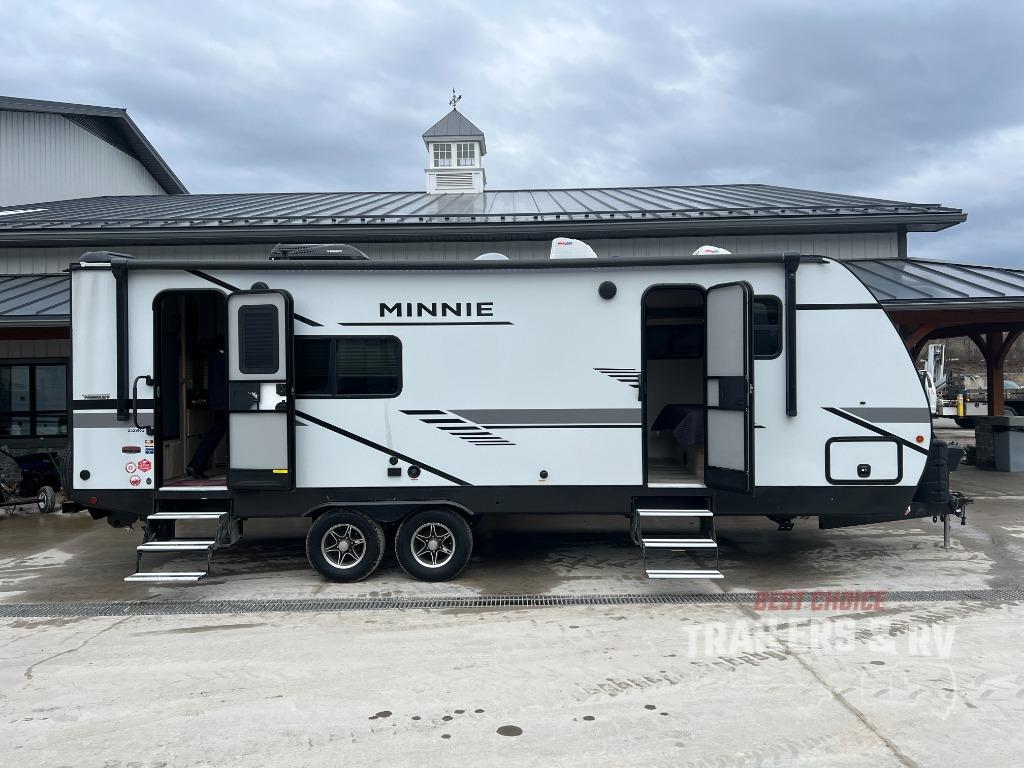 Every one of these Winnebago Industries Towables Minnie travel trailers have been designed for big outdoor adventure! Their compact space is maximized with a class-leading storage area that has 44 cu. ft. to pack in your gear. A NXG engineered frame and exterior fiberglass sidewalls with Azdel substrate hold these units together. The interiors come with creature comforts like a wireless cell phone charger, a spacious galley, and a queen bed with fitted bedspread and underbed storage. The stunning linoleum surfaces will be easy to clean and there is a light to brighten any trip. Come find your perfect model today!