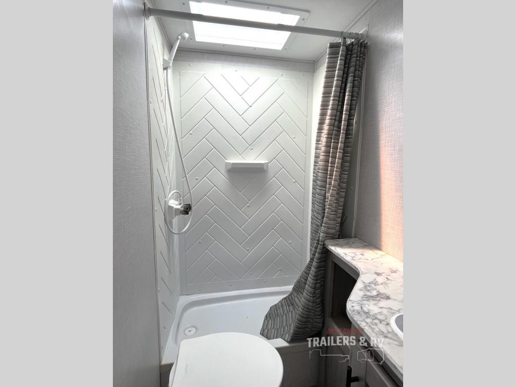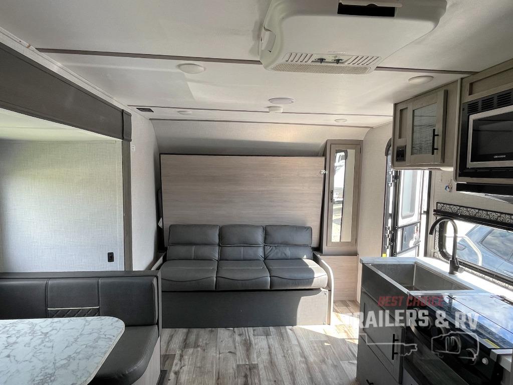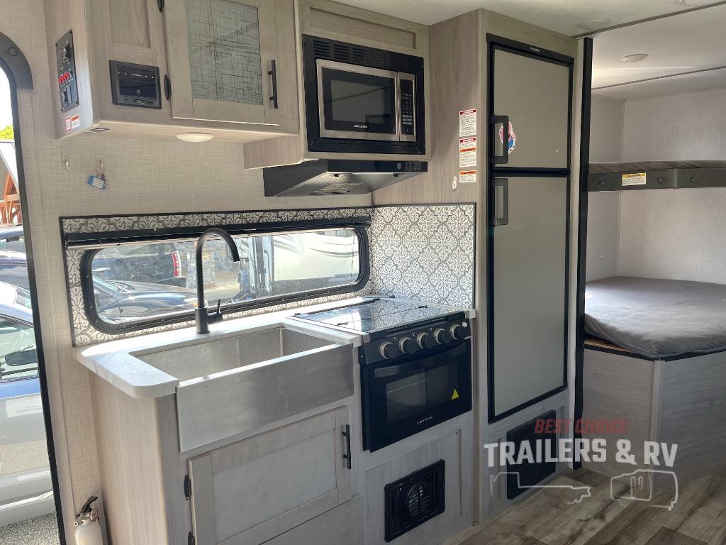 The Dutchmen Coleman Light travel trailer features an upgraded kitchen package with residential appliances, high-rise faucets, and a stainless steel farm-style sink. The fully enclosed underbelly allows all of your trailer's vital functions to be kept out of the freezing cold, and you'll have great stability as you enter your trailer by using the solid entry steps. Each model includes power stabilizer jacks, a power tongue jack, dual 20-LB propane tanks, a residential queen bed, and preparations for Wi-Fi 4G LTE. There is an aerodynamic front fiberglass cap, exterior speakers, solar charging connection, and aluminum wheels.