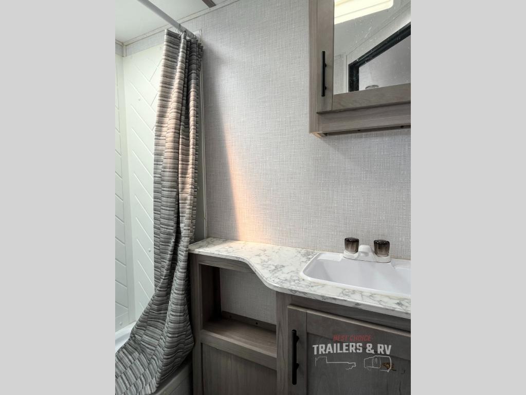 You can use this Coleman Light travel trailer for the many trips you have planned this summer! With a set of bunk beds, you'll have compact sleeping for those traveling with you, and you can use the Murphy bed after you reposition the sofa and pull it down. If cooking is one of your favorite things, you'll love using the three-burner range to prepare meals, and you can also use the microwave to prepare fast snacks or reheat leftovers. If you want to get cleaned up before you head out for another adventure, use the shower in the full bathroom to do so. There is a power bath fan to keep the steam from overwhelming you and a wooden medicine cabinet with mirror to help you get ready.