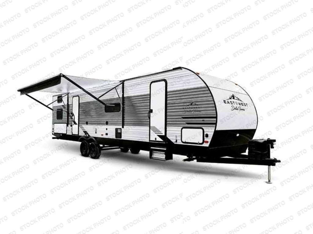 With any Della Terra travel trailers by EAST TO WEST, there is aluminum siding, bowed truss roof rafters, a one-piece seamless DiFlex ll roof, fiberglass insulation throughout, and a fully enclosed and heated underbelly with anti-puncture underbelly allowing you to stay and travel during any climate. The interior offers comfort and convenience throughout with an 81" ceiling height, seamless designer countertops, night shades to be able to sleep in, a sound system with Bluetooth and HDMI connectivity, and an extra large dinette picture window for great views. Choose a Della Terra that fits your camping lifestyle!
